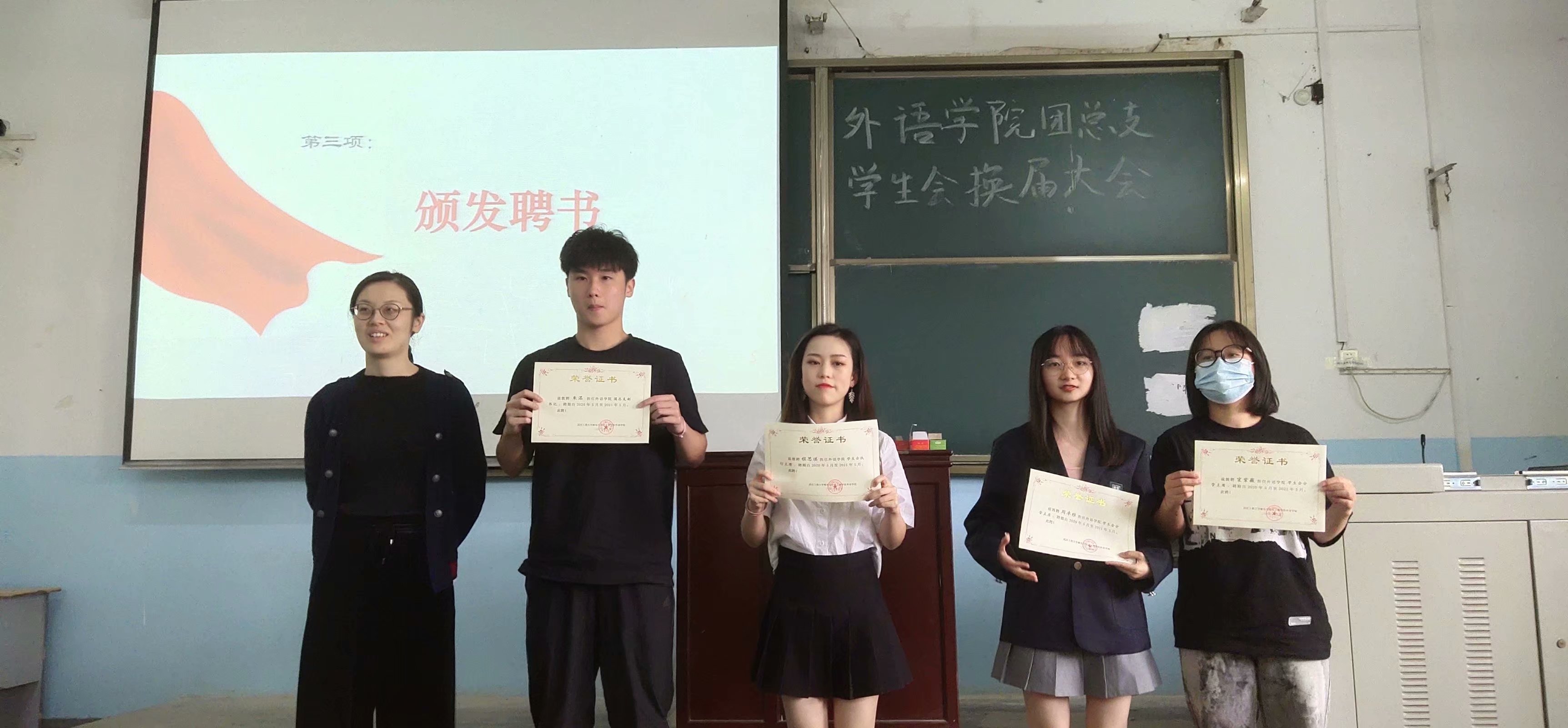 (通讯员 沙沙)2021年5月21日中午12: 30分,外语学院团总支学生会换届大会在一教1319召开,参加本次大会的有外语学院团总支书记卢启慧老师以及外语学院团总支学生会全体成员。大会由新一届学生会执行主席王彤主持。 大会在庄严的国歌声中开始,首先由上一届学生会执行主席程思琪和团总支副书记朱洺发言,他们总结了上一任学生会、团总支辛苦付出所取得的成绩,同时给予下一届学生会成员新的期待,表达了对这个组织的感谢,让自己得到了历练与成长。接下来依次通过新一届学生会、团总支主席团成员以及各部门部长名单,并由卢启慧老师为他们颁发聘书。 ![]() ![]() 最后,团总支书记卢启慧老师就上一届学生会的辛勤付出表示了感谢,对新一届的团学干部提出了新的要求,要多沟通、多联系,增强团队协作能力。至此大会伴随着共青团团歌圆满结束。 ![]() (责任编辑:admin) |