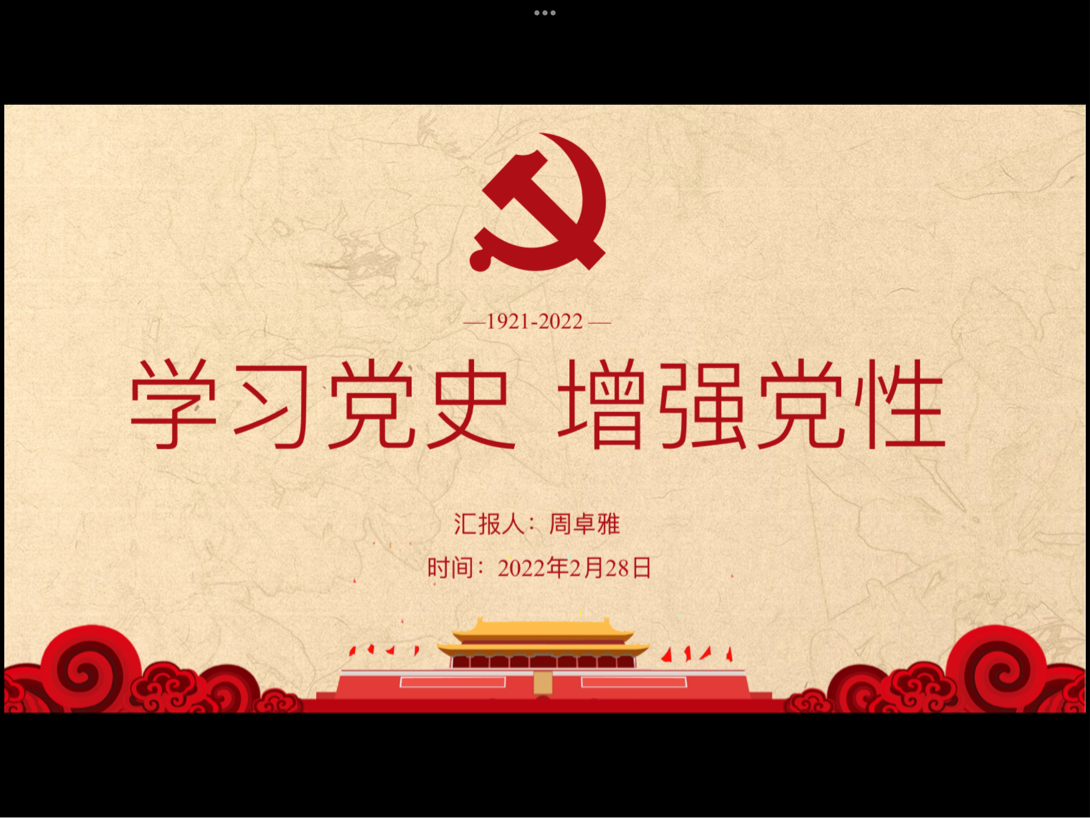 (通讯员 周卓雅)为进一步深化党史学习教育,弘扬伟大建党精神,深入推进支部标准化、规范化建设,外语学院党总支第三党支部于2022年2月28日晚在1323教室开展了“有信仰的人讲信仰”党史系列微党课第六讲——学习党史,增强党性。出席本次微党课的有外语学院党总支副书记齐君、第三党支部书记王敏及第三党支部全体学生党员,此次微党课由正式党员周卓雅同志讲授,题目是“学习党史,增强党性”。