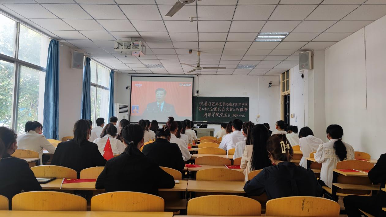 (通讯员:杨为志,摄影:冯甜甜 詹泽贤)10月16日上午10点,中国共产党第二十次全国代表大会在北京人民大会堂隆重开幕。304永利集团外语学院采取集中和分散相结合的方式,组织收听收看习近平总书记在大会上的报告,学习领会党的二十大精神。参加主会场的有外语学院党总支书记院长李春英、副书记齐君、副院长温偲睿、教师第二党支部书记吴丹、学生党支部书记王敏、辅导员徐晨及全体学生党员、入党积极分子、团学干部。