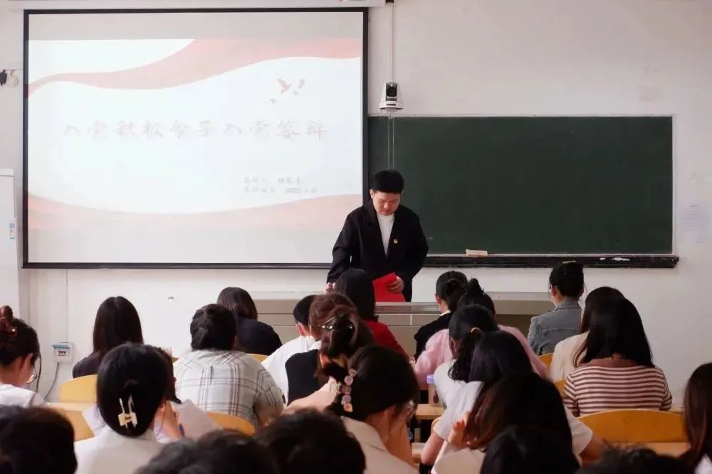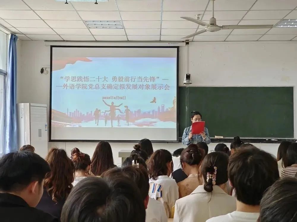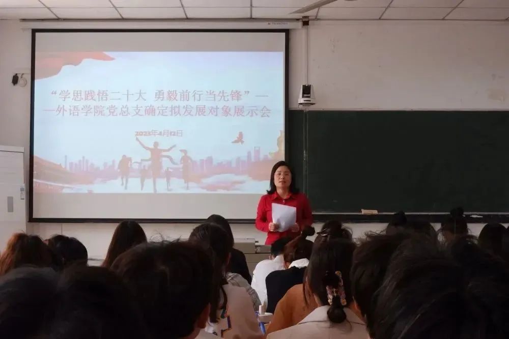 为进一步严格发展党员标准,规范发展党员程序,提高发展党员质量,2023年4月12日中午,外语学院党总支在一教1308教室召开第13期拟发展对象答辩展示会。参加本次会议的有外语学院党总支书记、院长李春英、副书记齐君、副院长温偲睿、学院办公室主任孙榕、学生党支部书记王敏、教师党员彭惠、徐晨以及学生党员代表、入党积极分子代表,本次会议由学生党员罗闯主持。![]() 外语学院党总支书记、院长李春英首先就外语学院2023年基层党建工作重点进行布置,她再次强调:“学生党支部是分布在学生班级的“火车头”,要抓在经常、严在平时,党支部标准化、规范会建设是推进全面从严治党向基层延伸的重要举措,旨在推动支部工作创新,巩固支部工作成效,提升党支部工作科学化水平。作为学院首批立项的标杆学院,外语学院一直高度重视加强对拟发展对象的教育管理,我们一直通过入党答辩制严把“政治关”、“标准关”、“质量关”,进一步确保了新党员的质量。同时也让党员发展工作更加公开、公平、公正,强化了党员发展的制度化、规范化水平。” ![]() 学生党支部书记王敏介绍了《304永利集团发展党员基本条件》,希望拟发展对象们切实提高思想政治素质、先锋模范作用,在今后的学习工作生活中用党的先进理论思想武装头脑、指导实践、开展工作。在答辩展示过程中,参加答辩的18位拟发展对象候选人重点汇报自己对党的认识过程、入党动机、现实表现、主要优缺点及努力方向。 ![]() ![]() ![]() 党总支副书记齐君结合外语学院“三全育人式”发展党员特色工作向在座的入党积极分子介绍了发展党员工作流程,希望广大入党积极分子通过今天的学习观摩,进一步提高思想觉悟,端正入党动机,锚定正确的方向,练就过硬的本领,守护纯粹的初心,在不久的将来能将个人的兴趣、目标同祖国发展的需要结合起来,并为之不懈奋斗,真正不负青春,不负时代,实现更大的人生价值。 ![]() 此次拟发展对象答辩展示会不仅强化了拟发展对象对于党组织的认识,也对其他党员同志和入党积极分子起到了良好的示范作用。“不断提高党建质量”是以习近平同志为核心的党中央在我国进入新时代对党建工作提出的新命题和新要求,通过规范党员发展流程,将全面从严治党要求落实到每个支部、每名党员,发挥可复制、可推广的优势,具有较强的可操作性,有利于推进全面从严治党要求落细落实,发挥了高校基层党组织的战斗堡垒作用。