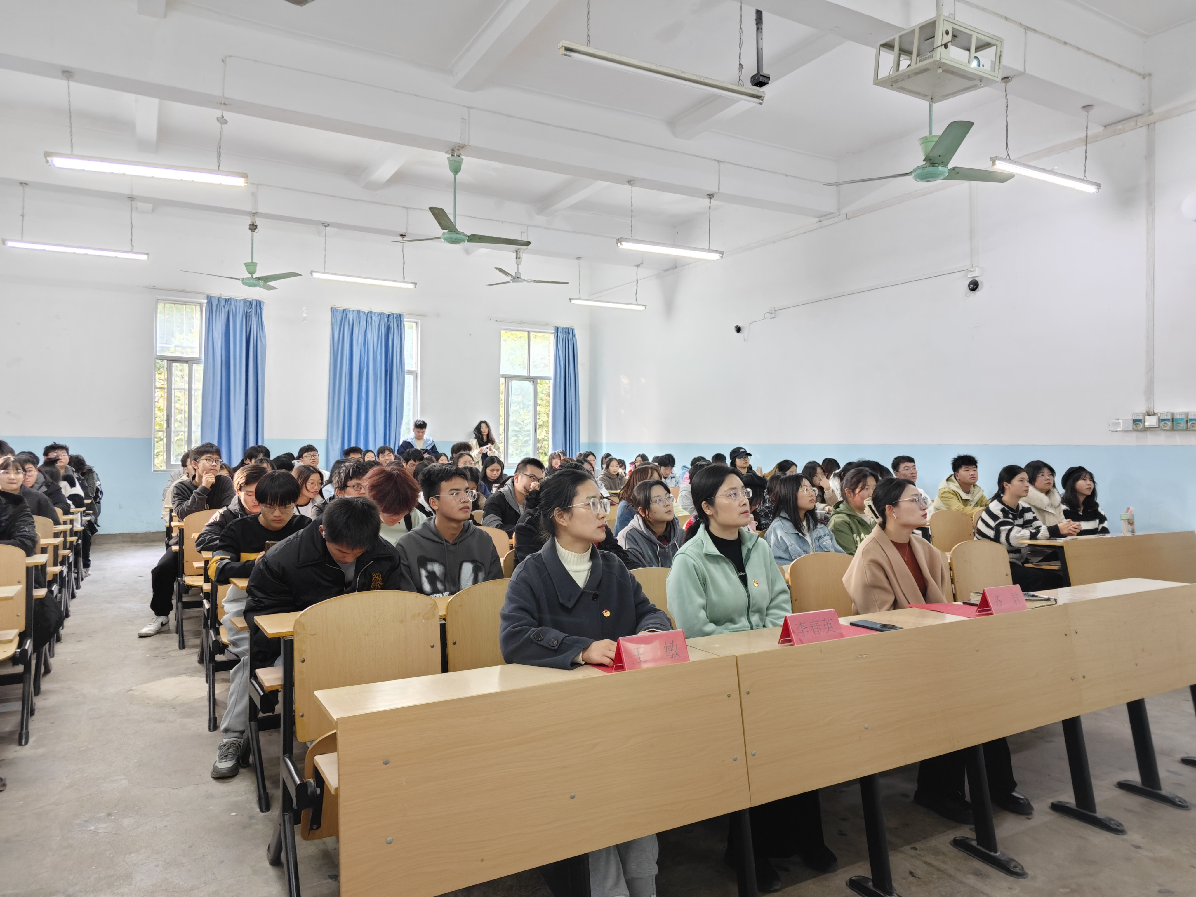 为了教育引导广大团员⻘年在理性思考、深入思辦中厘清关于奋斗精神的困惑,树立更坚实、更理性的奋斗观,帮助广大团员和青年深化理论学习的成果,将思考和研讨成果转化为立足岗位、建功立业的实际行动,2023年11月17日下午外语学院在1319教室组织开展了团员与青年主题教育活动。外语学院党总支书记院长李春英、党总支副书记齐君、团总支书记王敏、团学骨干以及2023级全体学生参加了本次活动。