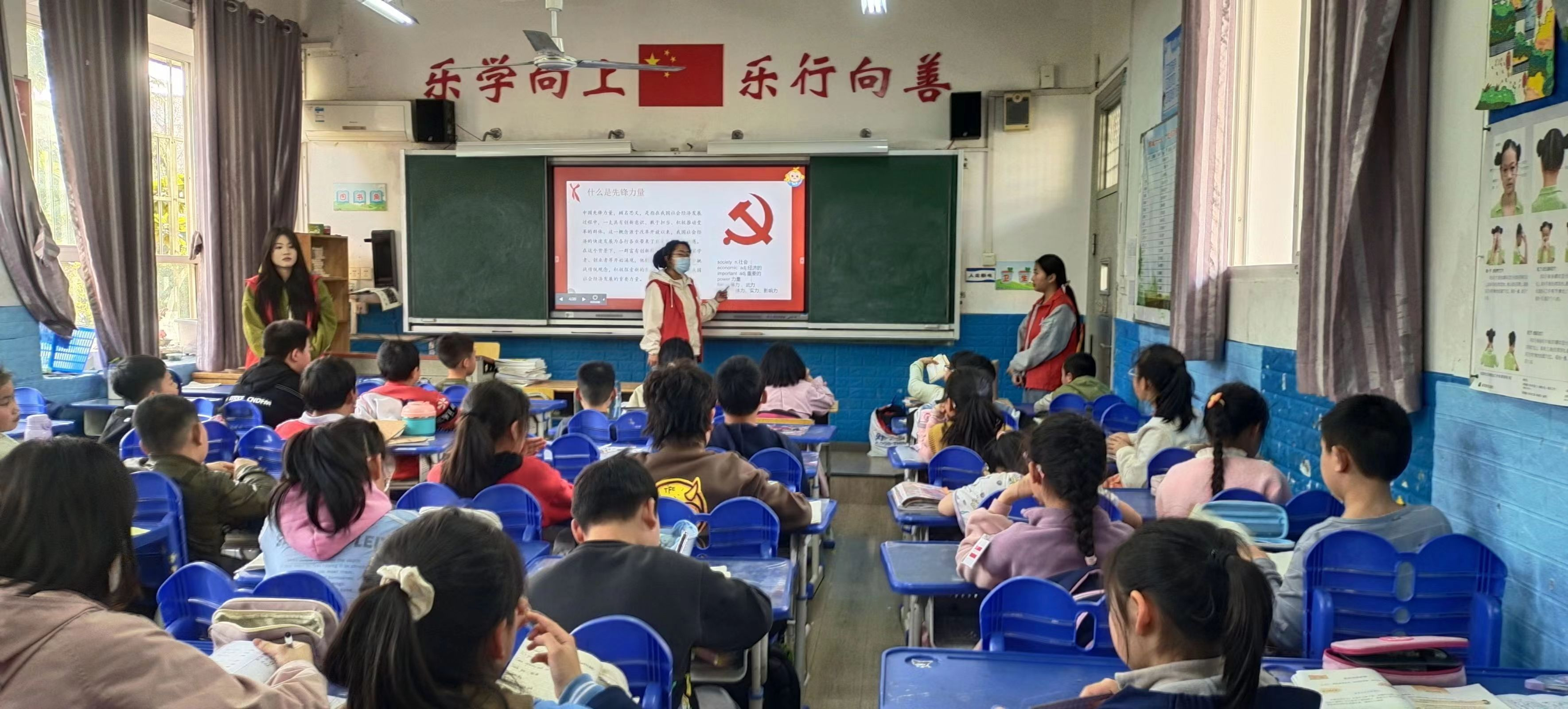外语学院珍珠宝贝志愿服务队主要由学生党员、积极分子、学生干部、优秀团员等组成,自2023年9月至今依托英语专业特色,在第一党支部教师的指导下,每周一至周四下午入驻钢城十七小“四点半课堂”,持续开展志愿教学活动62次,共计228名大学生志愿者参与其中。