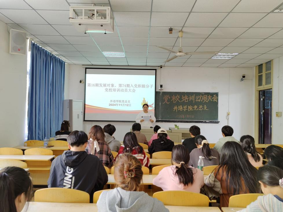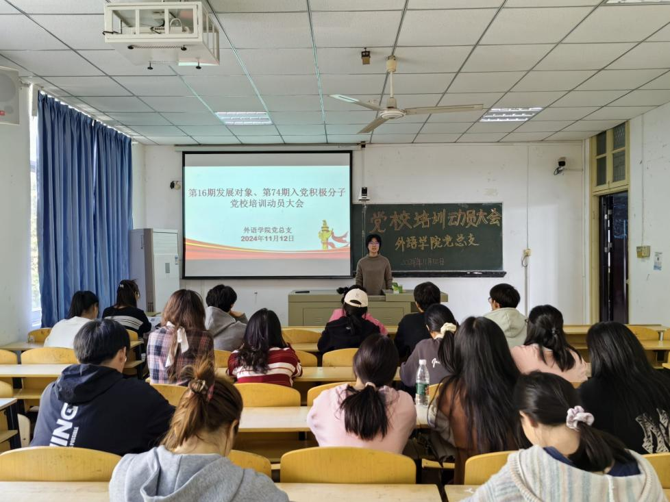 为深入学习贯彻党的二十届三中全会精神,进一步引导发展对象、入党积极分子树立正确的入党动机,并扎实有效地推进党校学员的培育工作。11月12日,外语学院党总支在1308教室召开了党校培训动员大会。参加本次会议的有外语学院党总支副书记郭咪咪、第三党支部书记王敏、第16期发展对象及第74期入党积极分子。会议由2022英语04班发展对象杨依雪主持。