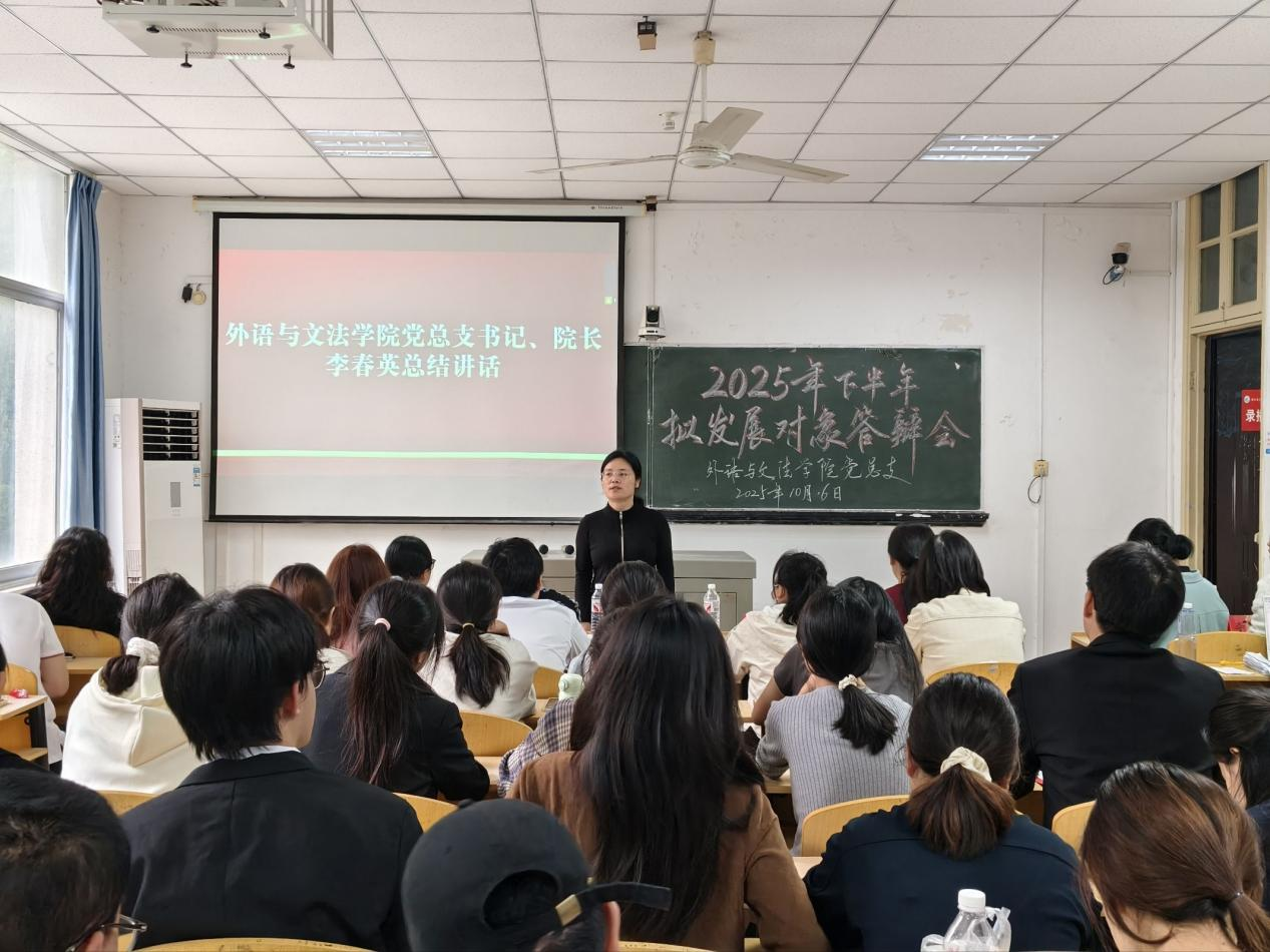 最后党总支书记、院长李春英进行总结讲话,她指出入党是一项光荣而又严肃的事情,一定要端正入党的动机,不只是从思想上入党,更要从实际行动上入党;她激励同学们要加强党性修养和政治理论学习,在实践中不断提高自身综合素质,见贤思齐,不断补短板,让优秀成为习惯。