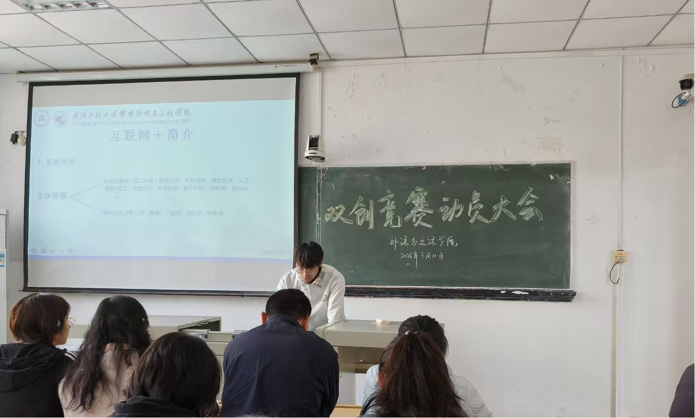 最后,党总支副书记熊巍作总结讲话。他深刻阐述了参与“挑战杯”和大学生创新创业等赛事对学生个人成长与学院高质量发展的重要意义,强调要坚持以赛促学、以赛促创、以赛促行,鼓励同学们踊跃参赛备赛,在实践中锤炼本领、增长才干,充分展现外文学子锐意进取、追求卓越的青春风貌,为学院的高质量发展注入青春动能。