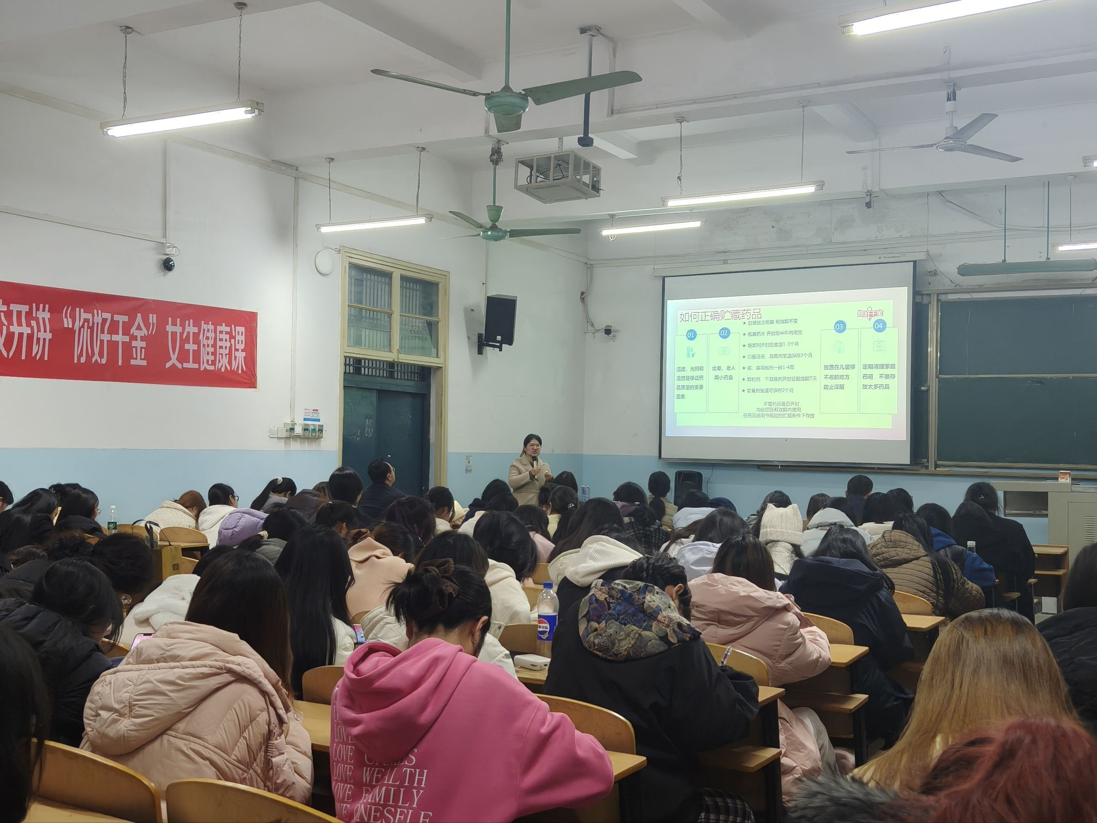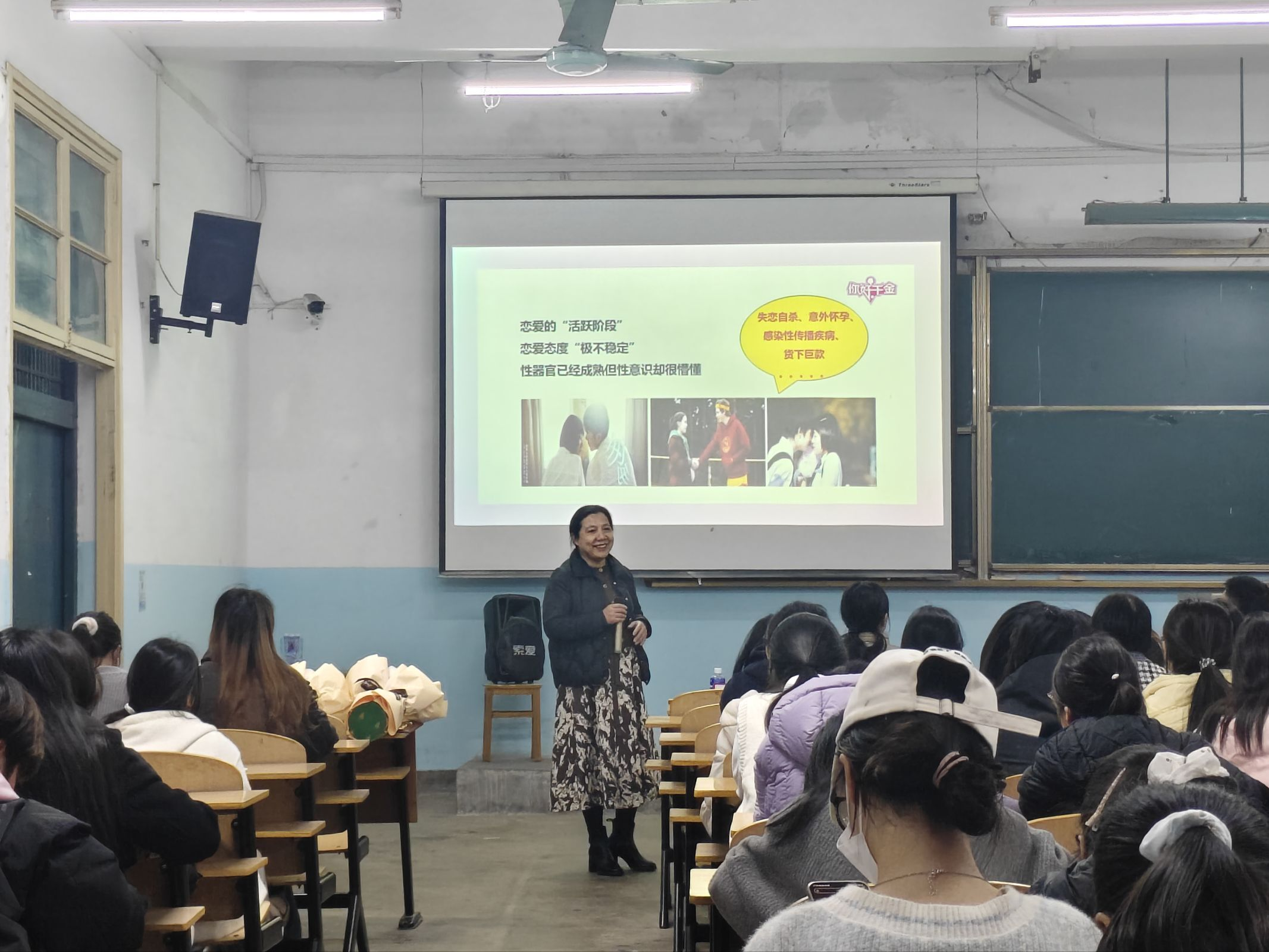 3 月 8 日晚,我院在1319 教室开展 “雷锋精神润青春・健康护航暖人心” 公益健康讲座,特邀湖北省妇幼保健院赵云教授、武汉儿童医院彭惠教授莅临主讲。讲座中,两位专家紧扣当代大学生身心发展特点,围绕健康恋爱观、性心理健康引导、安全用药规范及自我防护等核心内容,开展系统讲解与互动答疑。专家以鲜活的案例、通俗的语言,引导同学们树立科学理性的健康生活观念,帮助同学们提升安全用药意识与健康防护能力,以公益送健康的实际行动践行雷锋精神,让健康关怀浸润校园青春。