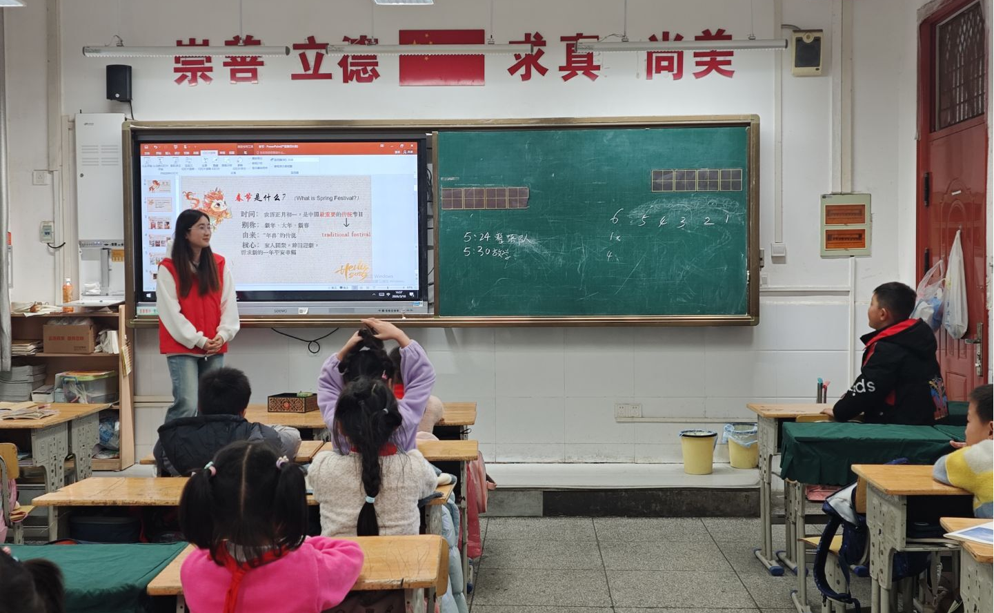 每周三下午,珍珠宝贝志愿者服务队依托 “四点半课堂” 志愿服务项目,开展 “践行雷锋精神・支教护航伴成长” 主题实践活动,走进钢城十二小为孩子们送上特色文化教学。活动采用 “课堂教学 + 实践体验” 模式,志愿者们生动讲解中华传统节日起源、民俗与文化内涵,通过趣味问答调动学生积极参与活动;同时结合外语专业特长融入英语知识教学,拓宽孩子们的知识视野、提升综合素养。青年学子以支教服务践行雷锋精神,在奉献中深入社会、锤炼品格,实现思政育人与支教帮扶的深度融合,让雷锋精神在校园与基层课堂薪火相传。