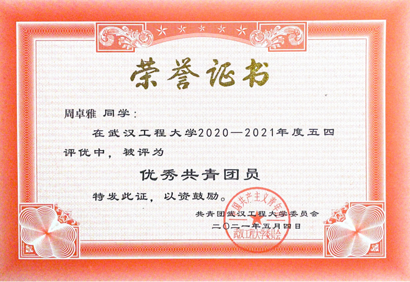 周卓雅对自己的严格要求不仅限于学习上。在思想上,大一时她就积极向党组织靠拢,现已是一名中共党员;在工作上,她曾担任外语学院学生会主席及班级学习委员,在这个过程中锻炼了自己的理性思维和逻辑能力,她曾作为学生代表在2021年新生开学典礼上发言。这些经历都使得她能够落落大方地应对很多公开活动,为考研复试取得高分打下了坚实的基础。她还经常利用寒暑假时间进行社会实践,曾获校“三下乡”暑期社会实践先进个人,在不断打磨中提升了自身的社会阅历和抗压能力。