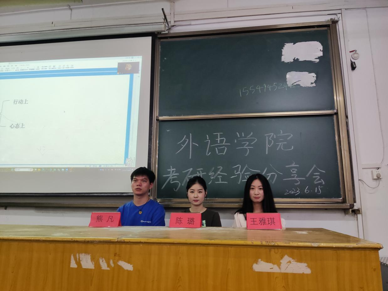 (通讯员 曾晨阳、徐然)为进一步推进学风建设,精准帮扶意向考研的学生,给备考学生加油鼓劲,外语学院于2023年6月15日12:00在1教1119举办了“学长学姐说之考研经验分享会”,会议由外语学院陈菲同学主持,外语学院副院长温偲睿,党总支副书记齐君,学生工作办公室主任王敏,还有各位2022级、2021级的同学们参加了此次会议。会议分为学长学姐个人经验分享、答疑解惑两个版块。随着我校考研的氛围越来越浓,考研已成为我院大部分学生的选择,我院在今年研究生升学考试中取得了骄人的成绩。为了让大一学生对考研有个初步的了解,让高年级学生对考研有更充分的认识,明确本专业的就业方向和发展前景,本院邀请了四位考研上岸的学长学姐作为嘉宾,向学弟学妹们分享他们的考研经历,亲授考研经验。