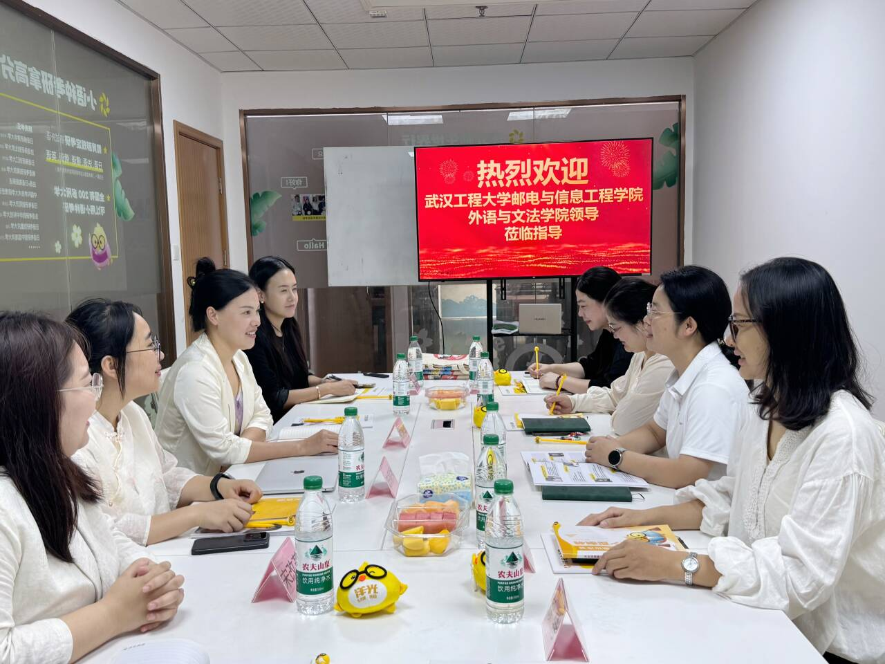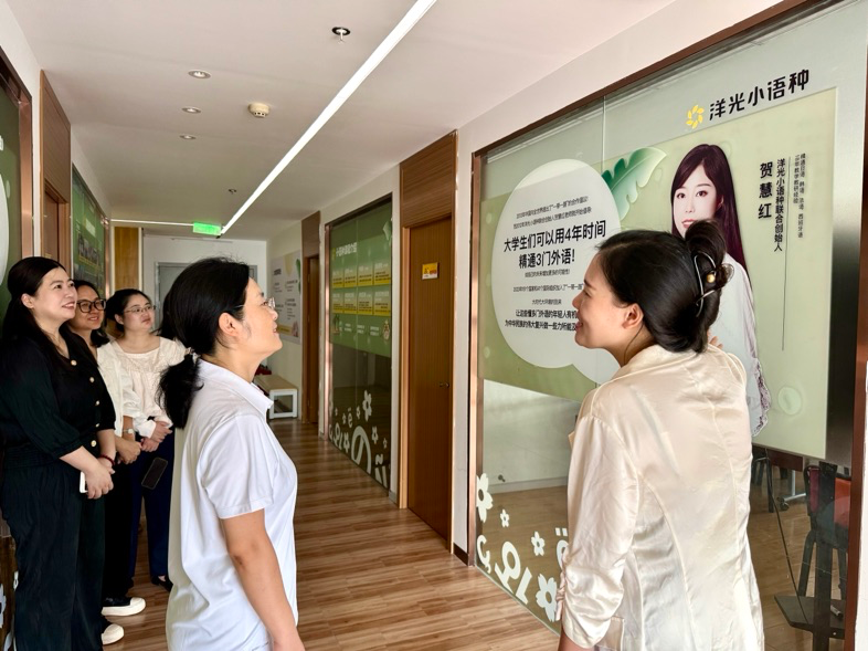 9月24日,304永利集团党总支书记、院长李春英,党总支副书记郭咪咪,英语专业教研室主任陈平香,公共英语教研室主任吴丹及就业辅导员徐特一行,赴武汉市洋光世言教育科技有限责任公司访企拓岗促就业,为外语专业学生搭建更高质量的实习就业桥梁,精准对接行业人才需求。洋光小语种武汉分校校长邓艳华,市场经理陈丽秀、杨方琳热情接待了李春英院长一行。