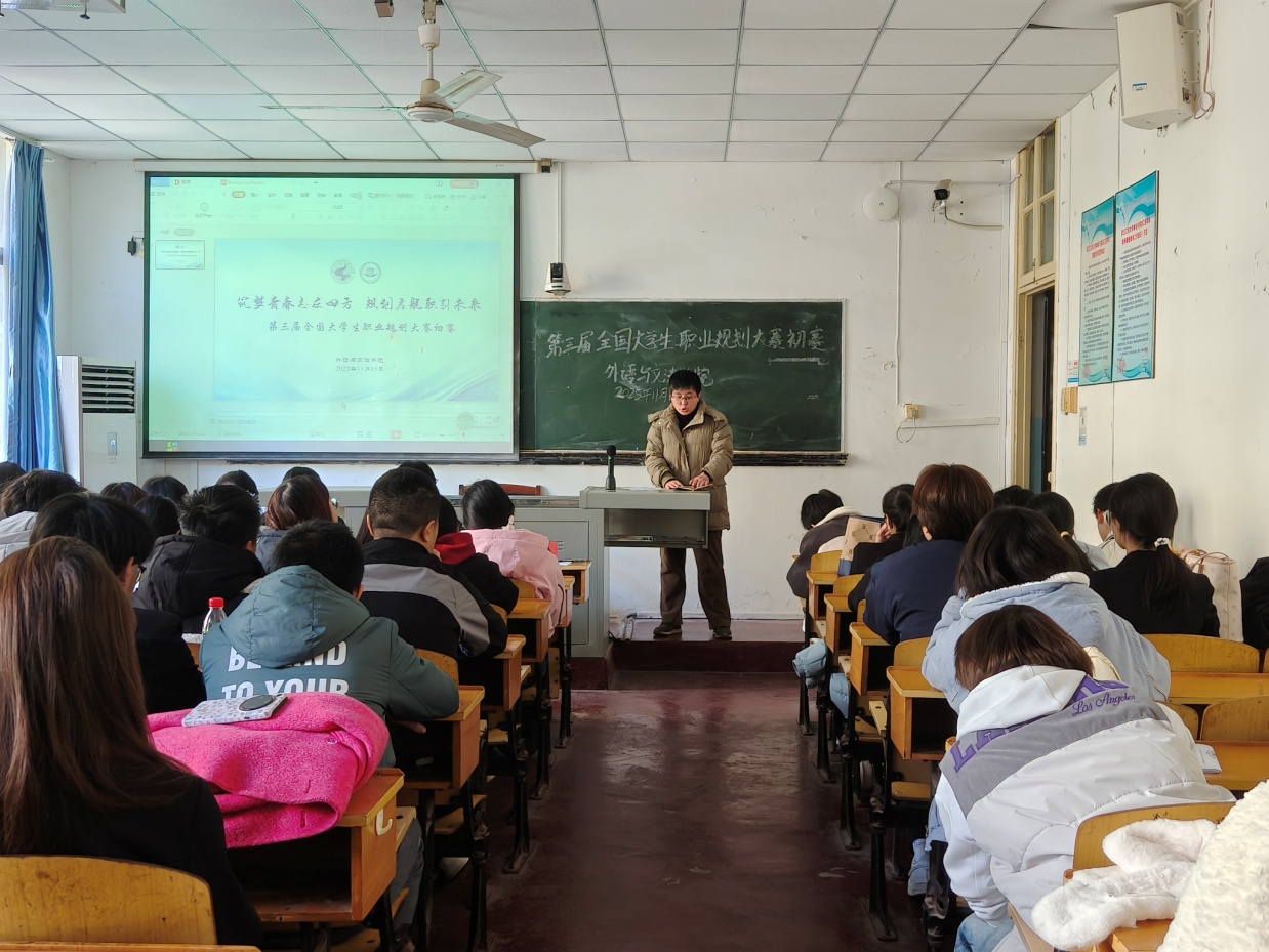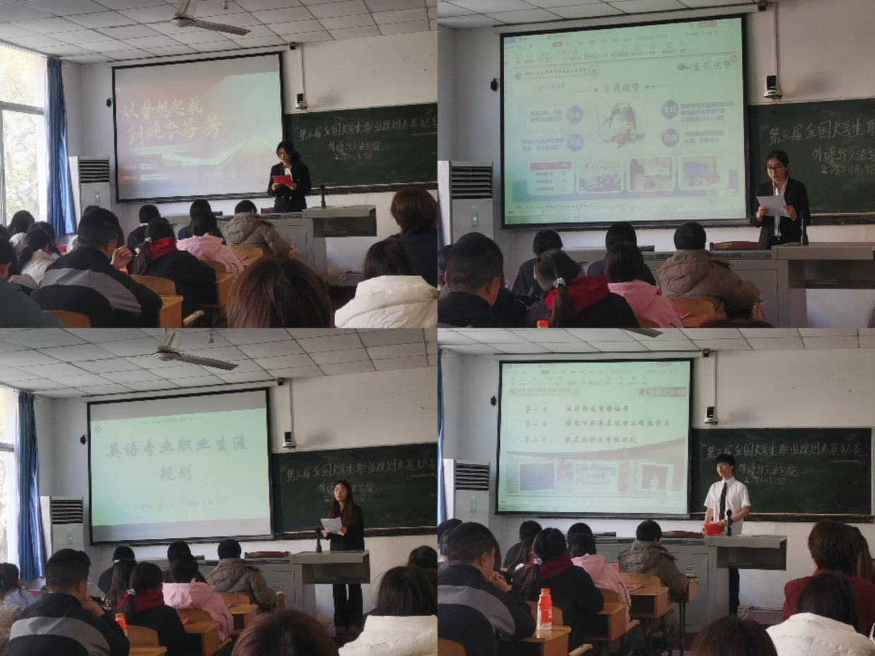 为贯彻落实党中央、国务院关于高校毕业生就业工作的决策部署,搭建大学生职业规划展示平台,增强大学生职业规划意识,深化职业生涯教育实践,304永利集团于11月19日在一教1306教室举行第三届全国大学生职业规划大赛初赛。304永利集团党总支书记、院长李春英,英语专业教研室主任陈平香,文法教研室教师肖艳、徐颖,辅导员徐特担任评委,全体班委及参赛选手参加此次活动。