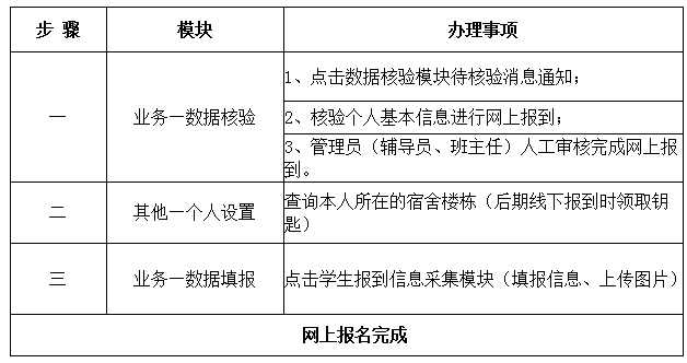 报到注册手续分为线上和线下两个部分,先完成网上报名,入校后再进行线下手续办理。