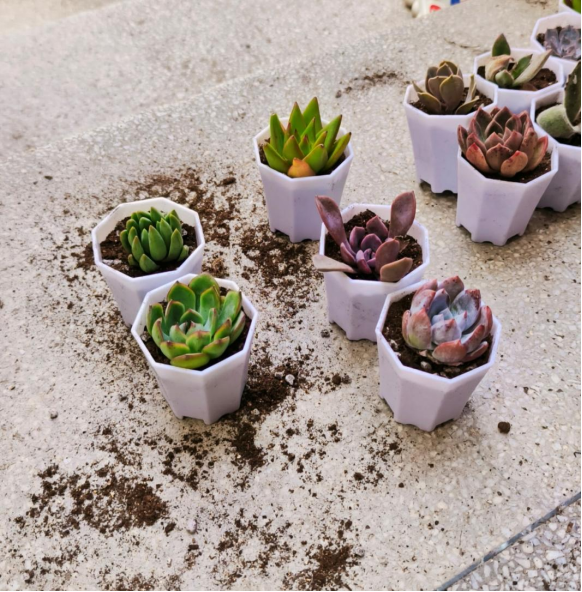 9月6日下午18:30,外小芊出生第一天。领养人在一教门口花坛集合,领养自己的“小芊”,并按照教程对多肉进行松土、剪根、晾根。
