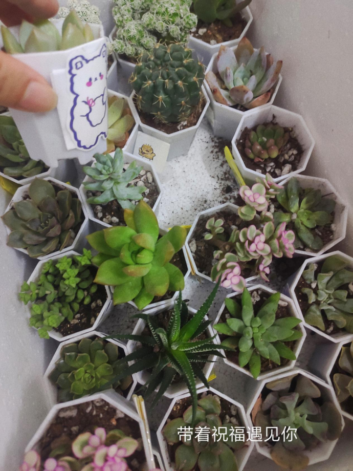 9月23日,外小芊与萌新见面倒计时开始啦!领养人精心照顾多肉,并在这段时间里完成小纸条祝福贴在花盆一侧。