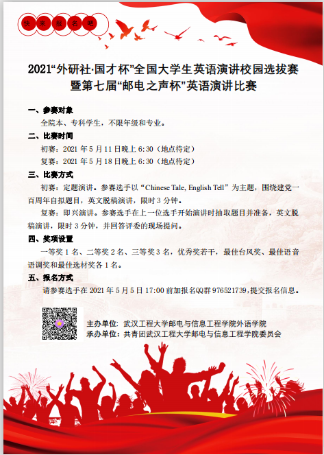 关于举办2021“外研社·国才杯”全国大学生英语演讲校园选拔赛暨第七届“邮电之声杯”英语演讲比赛的通知