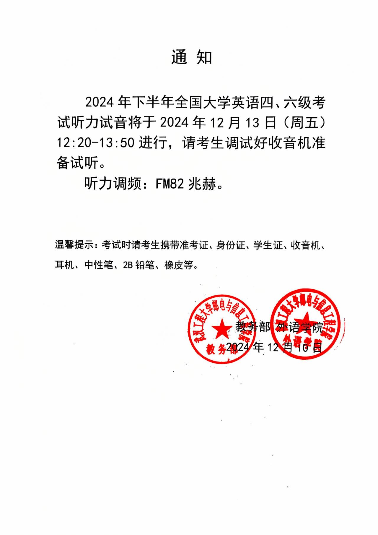 通知|四、六级听力试音