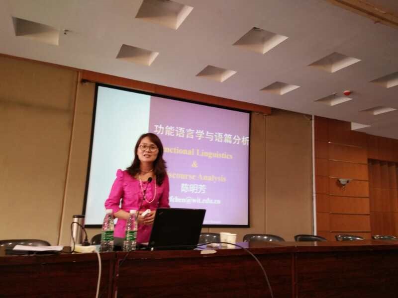 陈明芳教授所作的《我们赖以生存的语言》专题讲座,以功能语言学与语篇分析为理论基础,从Functions of language (语言功能)、English Grammar(英语语法)、Discourse analysis(语篇中的小句、情态分析)等三个方面进行了简洁、清晰而又专业的阐述。陈教授简单介绍了语言的功能,从功能语法角度分析了英语句型,并对学术语篇、法律语篇等不同体裁文体的语篇进行分析,为我们进行语体分析研究和不同体裁写作带来了启发。