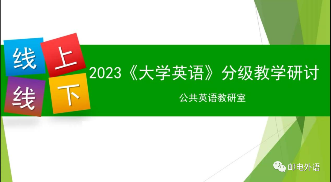 会议以“大学英语分级教学”为主题,就大学英语分级教学、线上线下混合式教学以及具体的教学方法、教学内容和考核方式进行了详细地介绍;参会教师也积极参与讨论,为大学英语课程建设建言献策。公共英语教研室将以此为契机,针对会议上提到诸多改革方法细则进行详细的探讨并制定相关方案。
