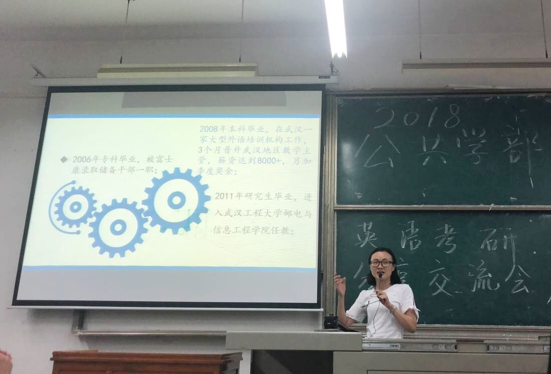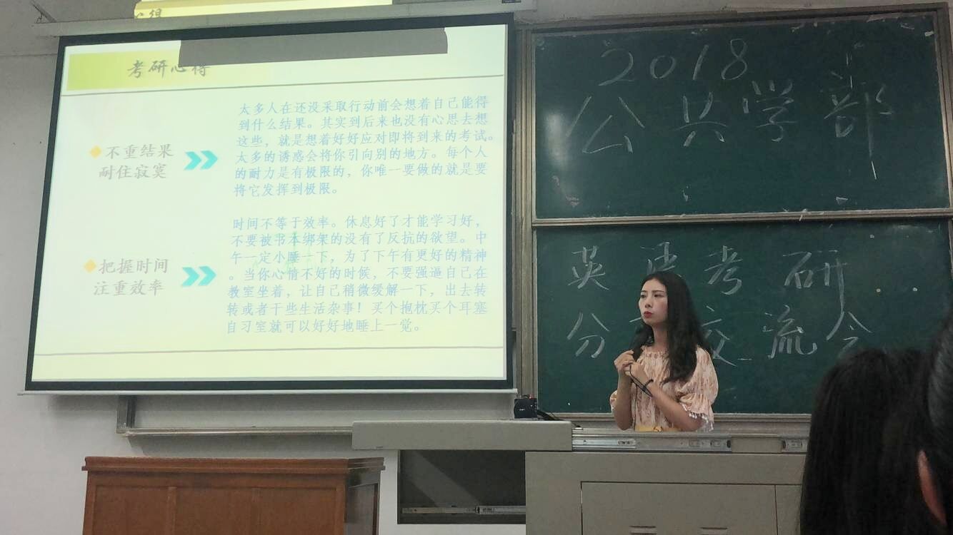 (通讯员 高帆)为提高学生们的考研热情和信心,掌握相关考研技巧,公共学部于2018年5月14日面向英语专业17级全体同学,部分15级、16级 两位学姐都详细介绍了自己的考研之旅。薛昕玥首先为大家分享了自己的一些学习和复习方法,如何定计划找目标,讲解了读研的必要性和备考期间应注意的问题;郑婷学姐告诉大家一旦下定决心就要坚持,努力做好,并与老师同学们分享了备考的艰辛,让大家感受到要能吃苦方能成大事,优秀是一种习惯。她们都提到考研是件辛苦的事,每个人都要做好充分的思想准备去应对可能会遇到的种种问题。陈平香老师和温偲睿老师也与大家分享了一些她们的备考经历,让在场每一位同学都知道,考研的确不是一件容易的事,但是只要坚持,只要付出,最后一定会有收获。最后陈世清主任鼓励大家,养成好的学习习惯,将会受益终生。 ![]() ![]() ![]() ![]() ![]() ![]() (责任编辑:admin) |