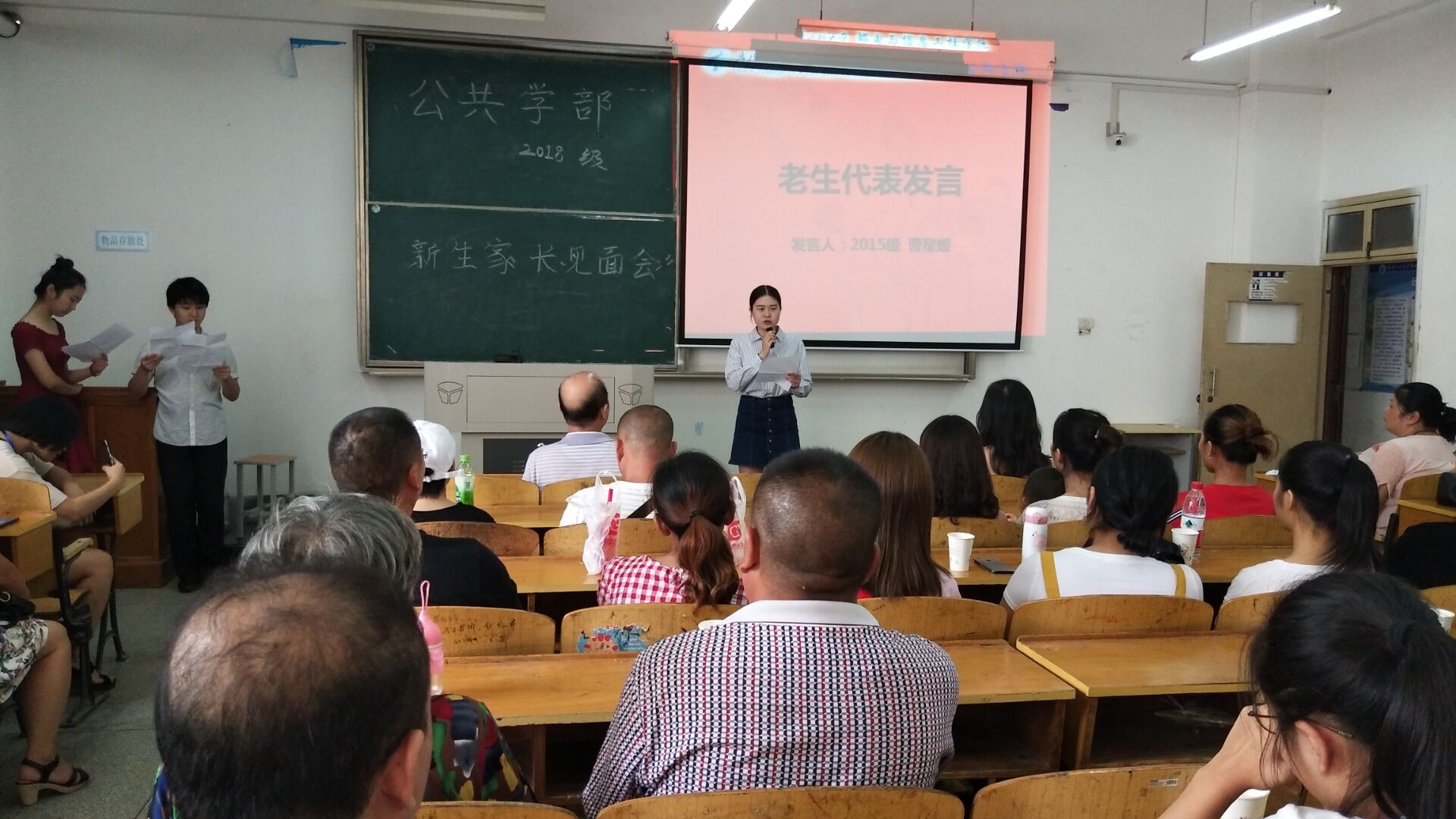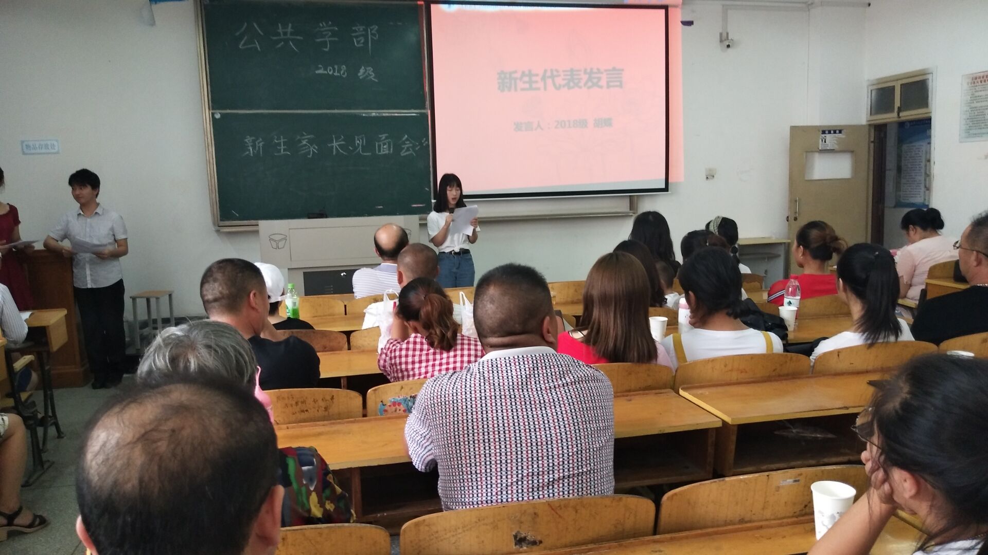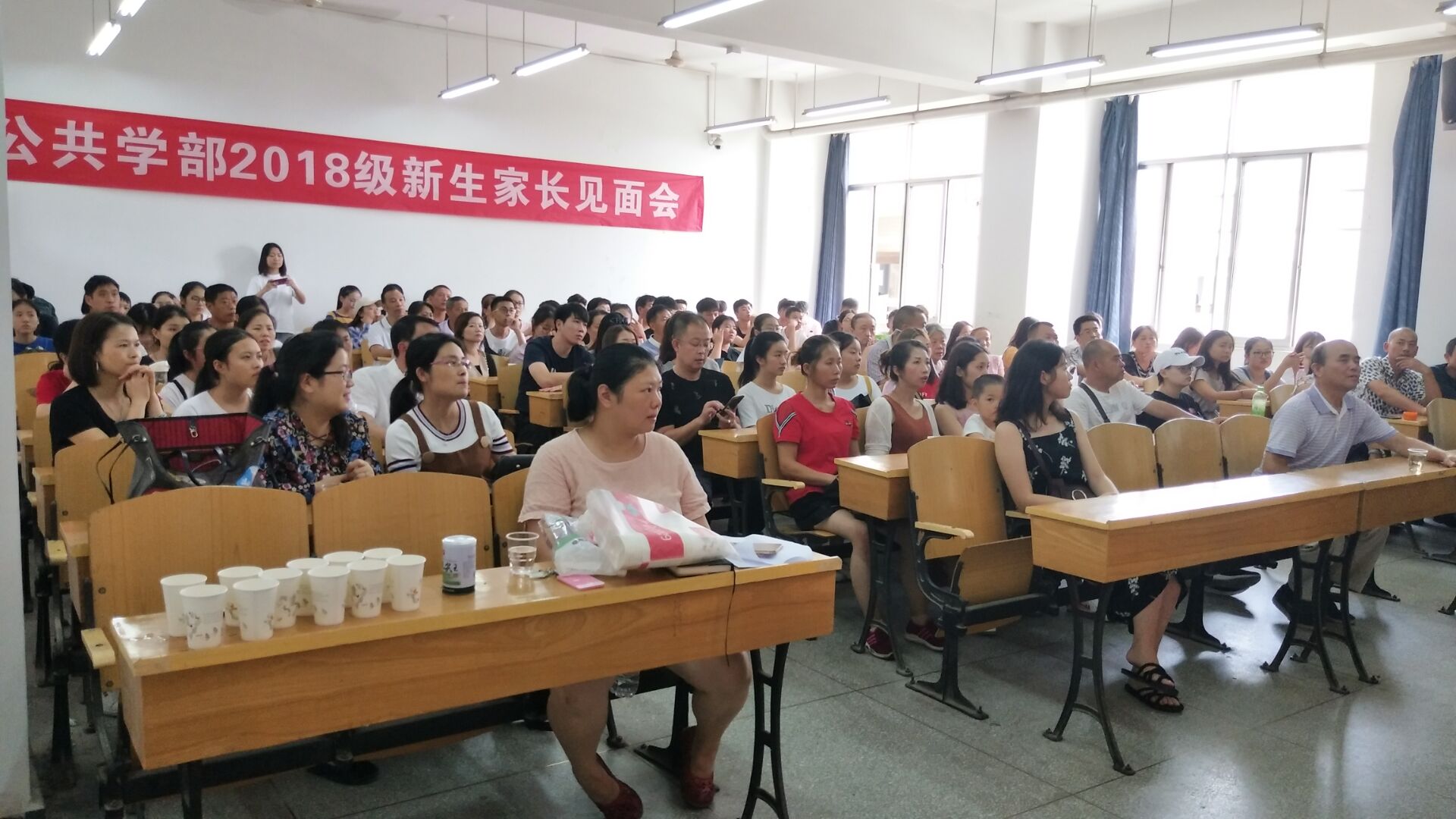 (通讯员:高畅 董杰) 2018年9月11日,我院迎接2018级新生工作井然有序。在这个新生家长云集的日子,为与新生家长更好地沟通,引导新生尽快融入大学生活,当天下午2:00,公共学部在3505教室举行了新生家长见面会。见面会由17级英语3班刘雨宏、18级新生汪雯同学主持。公共学部主任陈世清教授,副主任李春英副教授,英语教研室副主任温思睿老师、18级班主任李肖丹老师以及公共学部辅导员谭桑老师参加了会议,与近百名新生和家长进行了热烈的交流。