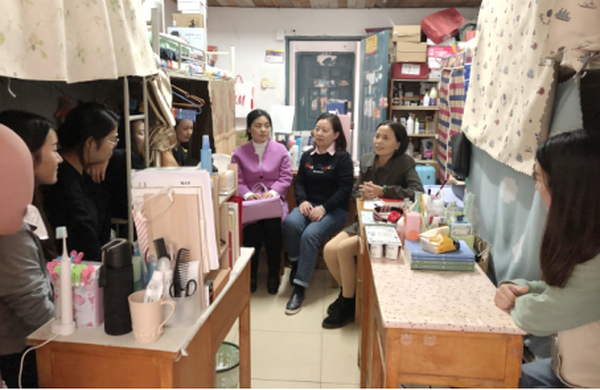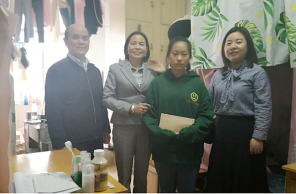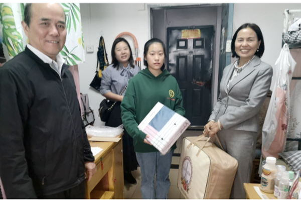 11月9日,肖书记一行走访慰问了1栋女生109宿舍,送去了慰问信和棉被等床上用品。她与2019级英语03班程梓胭同学进行了一对一谈话,询问该生有关入学适应的问题,了解其学习、生活、生涯规划等方面的情况,并鼓励学生培养良好的学习、生活习惯,勤奋踏实,争取在学业层次上有进一步提升。