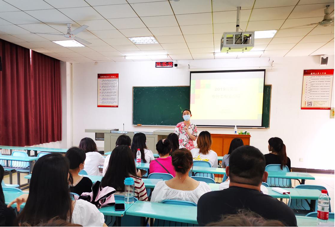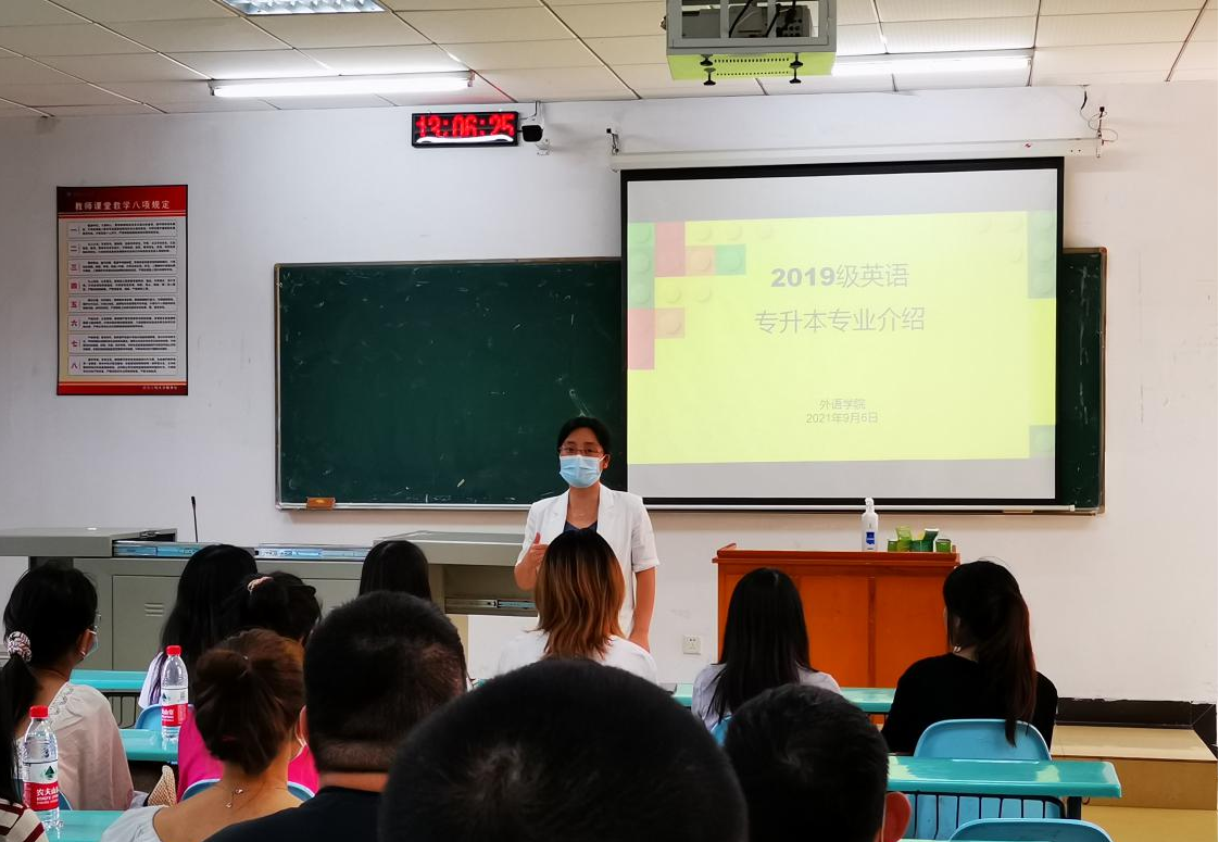 (通讯员 温偲睿)2021年9月6日下午13:00,外语学院党总支书记、院长李春英、副书记齐君、副院长温偲睿、英语专业教研室主任陈平香、办公室主任李肖丹到流芳校区为19级专升本新生开展英语专业认知教育活动,并到青年公寓走访看望了外语学院9名考研学生。 首先,在L2204教室进行了19级英语专升本班级的专业认知教育,李春英院长、齐君副书记、温偲睿副院长和陈平香主任为同学们送上了新学期的问候,表达了学院对同学们学习、生活的关心,增强了同学们的融入感和归属感。