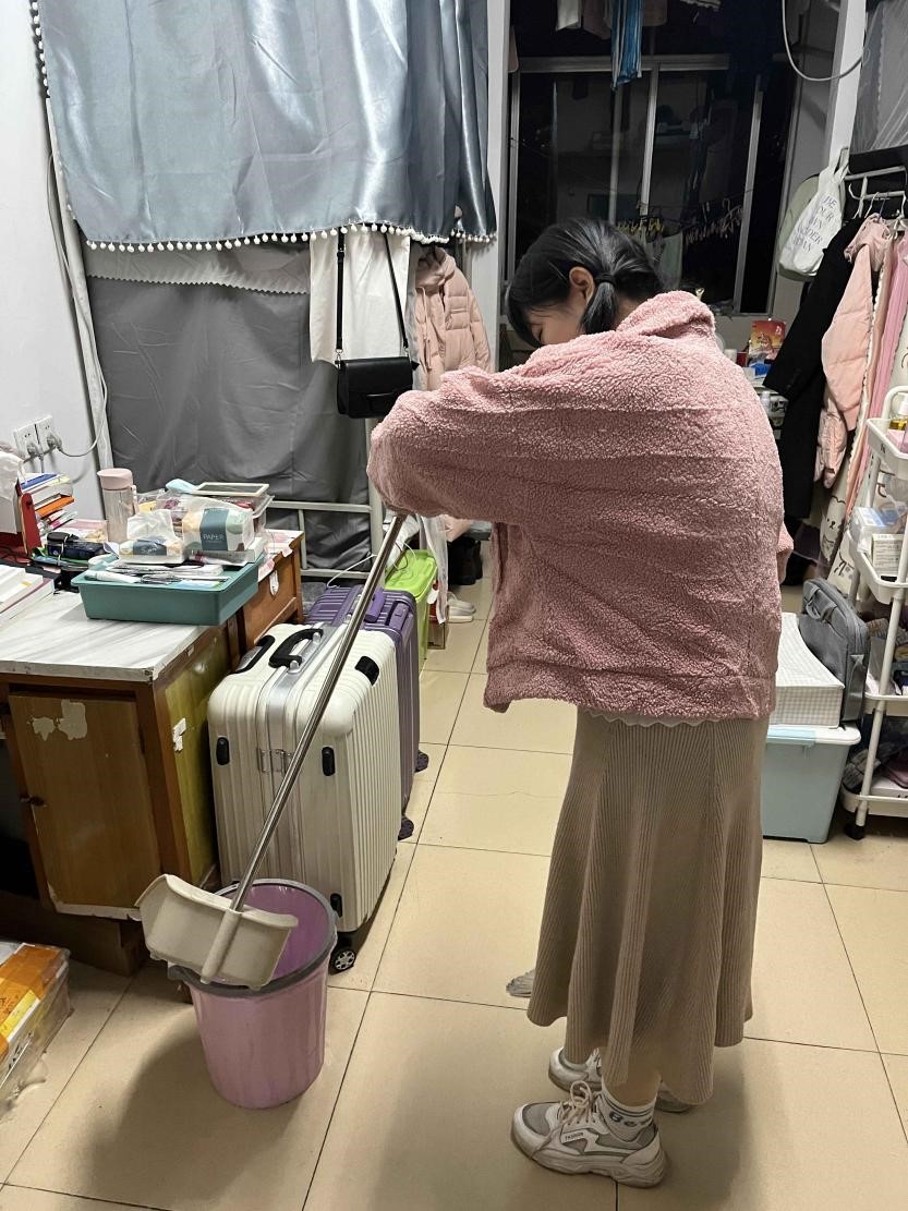 返校学子们也纷纷对宿舍进行卫生大扫除,辞旧迎新,新学期宿舍小屋“尘土净,物质清;屋整洁,心爽朗”。