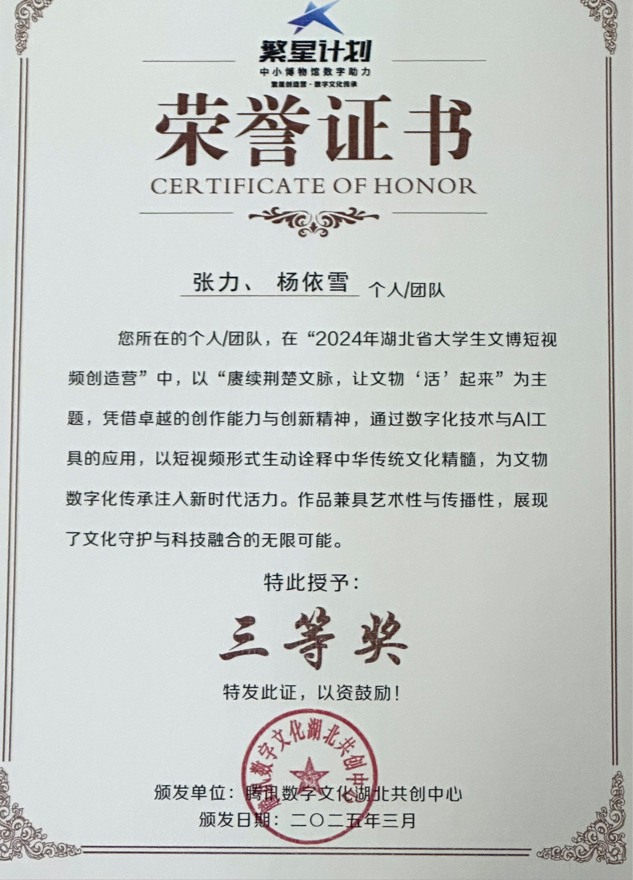 此次获奖不仅展现了我院学子的人文底蕴与创作实力,也为推动传统文化数字化传播提供了青春范本。