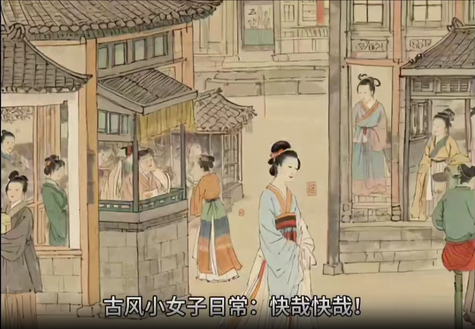 获奖作品《清明上河图中古风小女子日常》以北宋名画《清明上河图》为背景,通过一位灵动少女的视角,用微剧情形式还原画中市井生活的细节,展现古代服饰、饮食、民俗等文化元素,让观众感受到传统文化的温度与生命力。