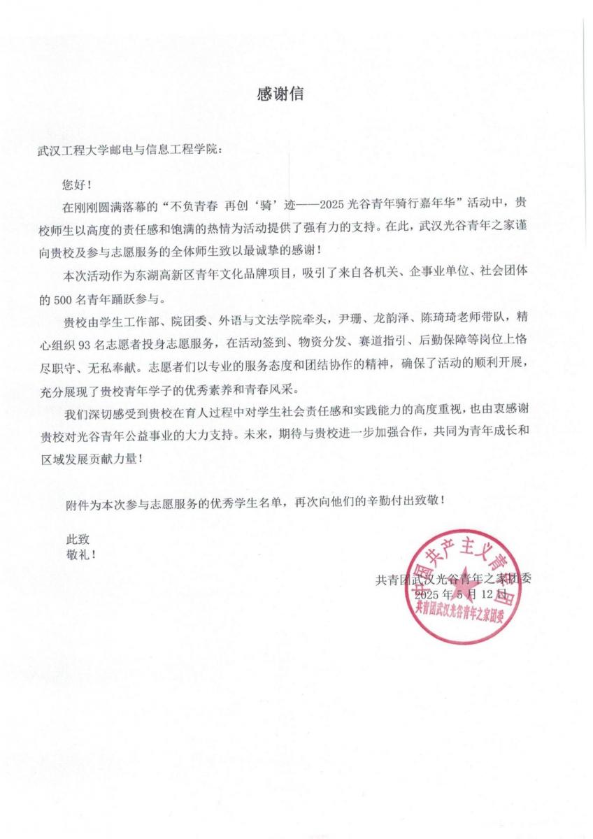 据悉,本次活动由团武汉市委指导,东湖高新区团工委、东湖风景区团工委主办,武汉光谷青年之家、美团单车承办,获得了武汉东湖绿道运营管理有限公司、武汉绿源建设工程有限公司、奥通传媒、深业翠微谷的大力支持,以及304永利集团百名青年志愿者的无私付出。