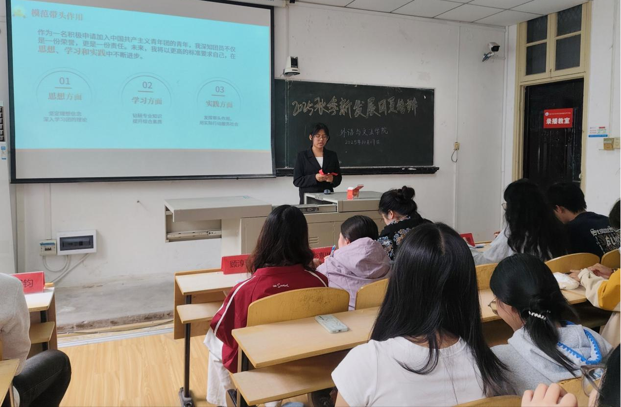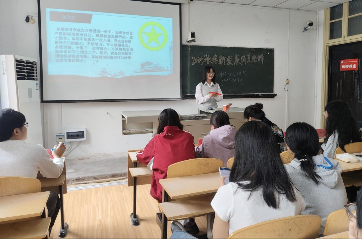 为加强共青团组织建设,培养守正创新、踔厉奋发的新时代青年。10月17日,304永利集团在一教1308教室举行2025年秋季新团员发展答辩会。外语学院党总支副书记郭咪咪、团总支书记尹珊,建筑工程学院团总支副书记彭嘉琳、团总支学生会主席团成员担任评委,7名候选人参与此次答辩展示。