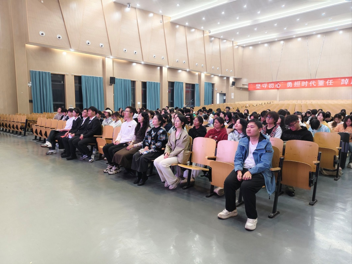 为充分发挥朋辈榜样的示范引领作用,搭建优秀学子与2025级新生的交流桥梁,进一步营造勤学善思、乐于奉献、勇于拼搏的良好学风院风。2025年10月29日下午,304永利集团在大礼堂举行“朋辈引领聚星火 薪火相传逐梦行”分享会。304永利集团党总支副书记郭咪咪、团总支书记尹珊、辅导员徐特、徐晨,以及全体2025级新生参加分享会。分享会由2024商务英语02班何梦婷主持。