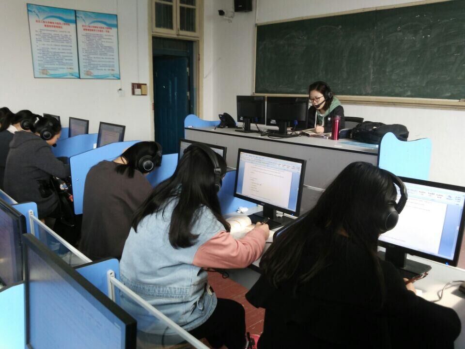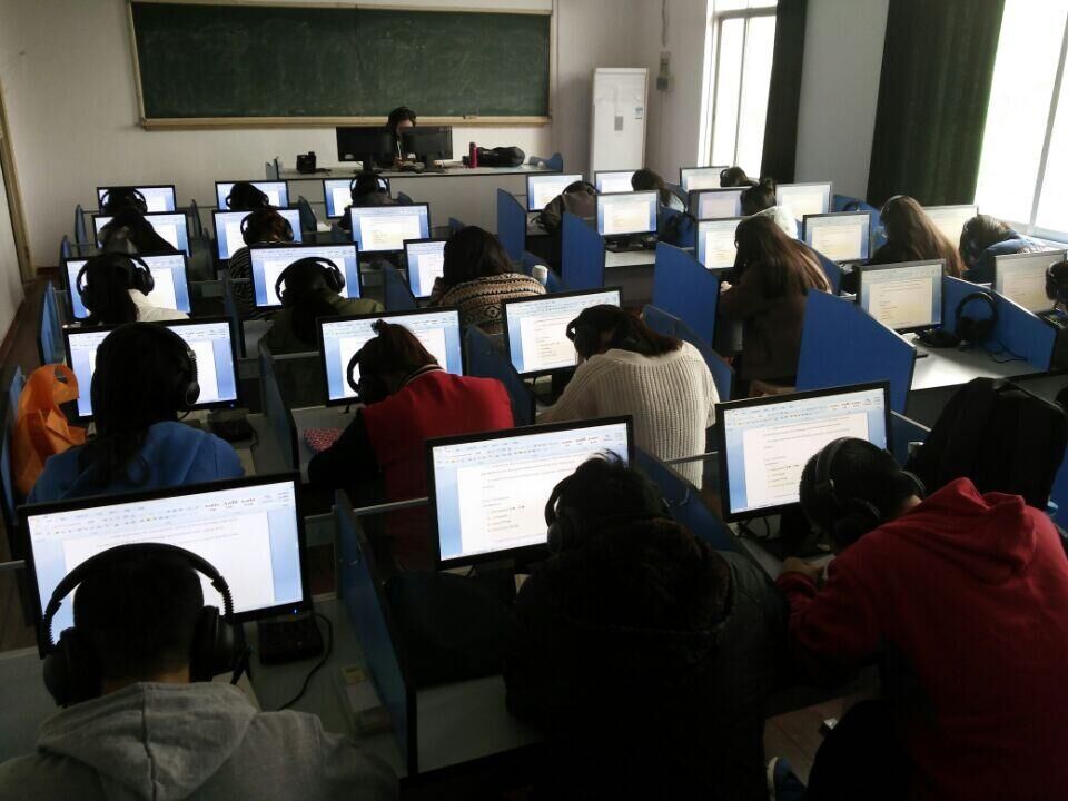 图片说明:英语专业学生在语音室上课