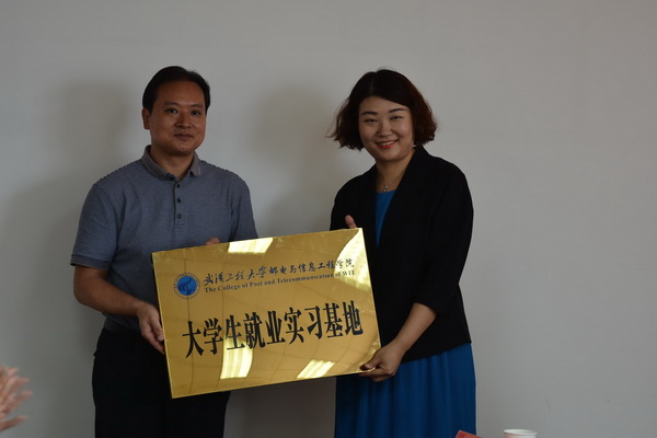 院党委副书记、副院长陈俊为企业授“大学生社会实践基地和大学生就业实习基地”匾牌。
