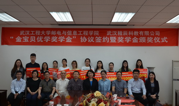 (通讯员 冯丽梅)2017年 5月23日上午,学院与武汉精辰科教有限公司“金宝贝优学奖学金”合作协议签约暨奖学金颁奖仪式在三教七楼会议室举行。学院院长黄志良,院党委副书记、副院长陈俊,院长助理兼学生工作处处长田文明,武汉精辰科教有限公司负责人刘妍、曾思思以及学院相关部门负责人,学生代表参加了仪式,仪式由学生工作处副处长聂海滨主持。 院长黄志良和企业签订合作协议。