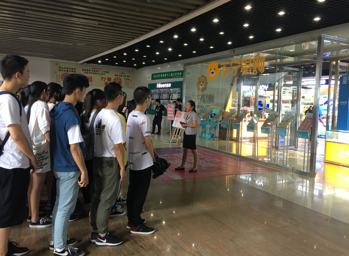 认识实习过程中,指导老师带领学生先后参观了4家企业,包括:武汉传神翻译公司、武汉吉的堡少儿英语培训、欧亚外语学校和苏宁易购光谷分店。通过参观,同学们深刻认识到英语学习的重要性,口语训练的必要性以及营销策略的趣味性。实习结束后,同学们纷纷表示,未来学习更有动力,更有方向,回校后一定要认真调整学习计划,朝着自己的目标奋斗。
