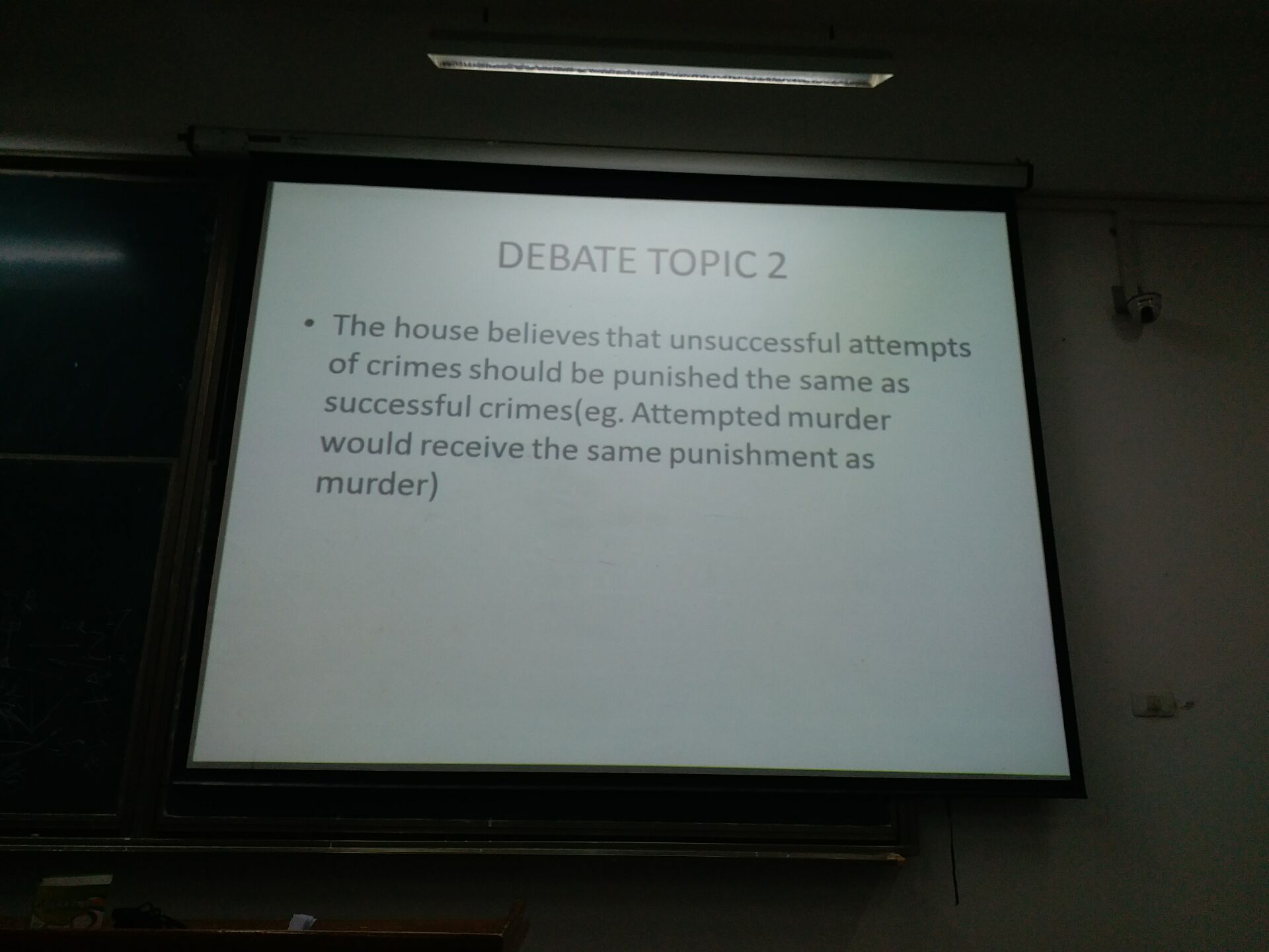 This house believes that unsuccessful attempts of crimes should be punished the same as successful crimes.(e.g.attempted murder would receive the same punishment as murder) 赛后,评委老师就本次比赛选手们的表现做出精彩点评,充分肯定了我院选手们的辩论水平,同时也指出不足,希望选手们再接再厉,再创佳绩。英文组冠军队将代表我院参加3月23日-25日在广州华南农业大学举行的第二十一届 “外研社杯”全国大学生英语辩论赛华中地区选拔赛。 ![]() ![]() ![]() ![]() |