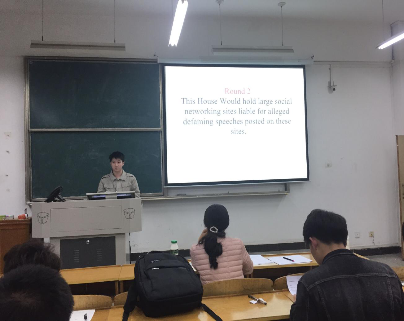 (通讯员 陈平香)2019年3月20日,我院第二十二届“外研社杯”全国大学生英语辩论赛校园选拔赛在3403、3405、3407教室顺利举行。参加此次校园选拔赛的一共有12支队伍,比赛由16级英语1班的鲁楠茜和蓝永利同学主持。担任本次比赛的评委有公共学部陈世清主任、李春英副主任、英语教研室温思睿副主任以及李丹、郑秀娟、魏然、刘慧莹、陈平香老师。