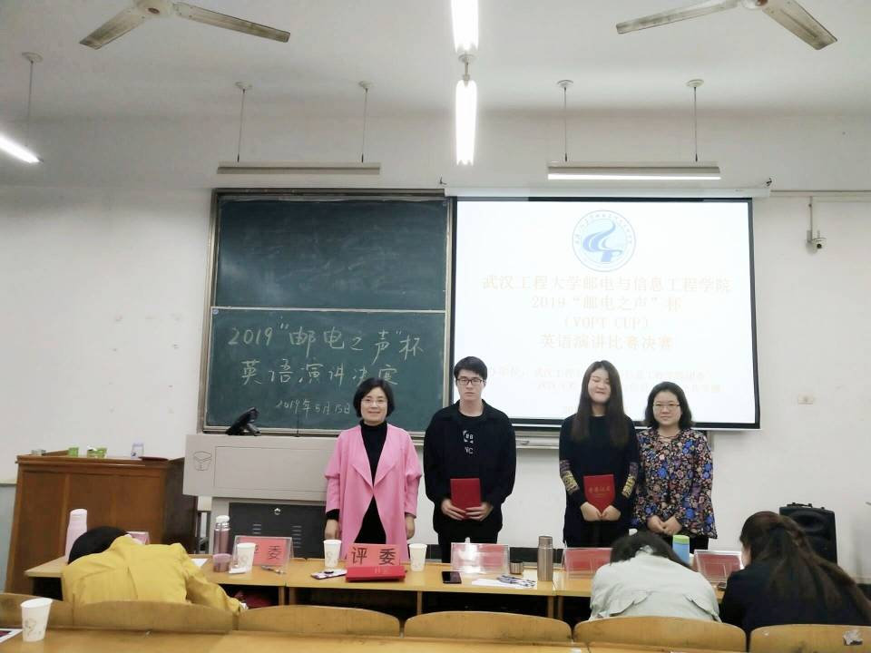 为激发我院学生学习英语热请、丰富校园文化生活、给学生提供一个展示才华和交流的机会,院团委和公共学部于2019年5月15日晚18:30在3405教室成功举办了“邮电之声杯”英语演讲比赛决赛。 出席本次比赛的领导有公共学部主任陈世清、副主任李春英、英语教研室副主任温偲睿。英语教研室吴丹、陈平香、叶奕芳、郑秀娟、熊小燕等老师担任评委。比赛由17级英语专业雷喆和陈梦云主持,陈世清主任代表全体老师致开幕词。 此次决赛的方式包括即兴演讲和现场回答问题两个环节。经过激烈的角逐,比赛结果如下: