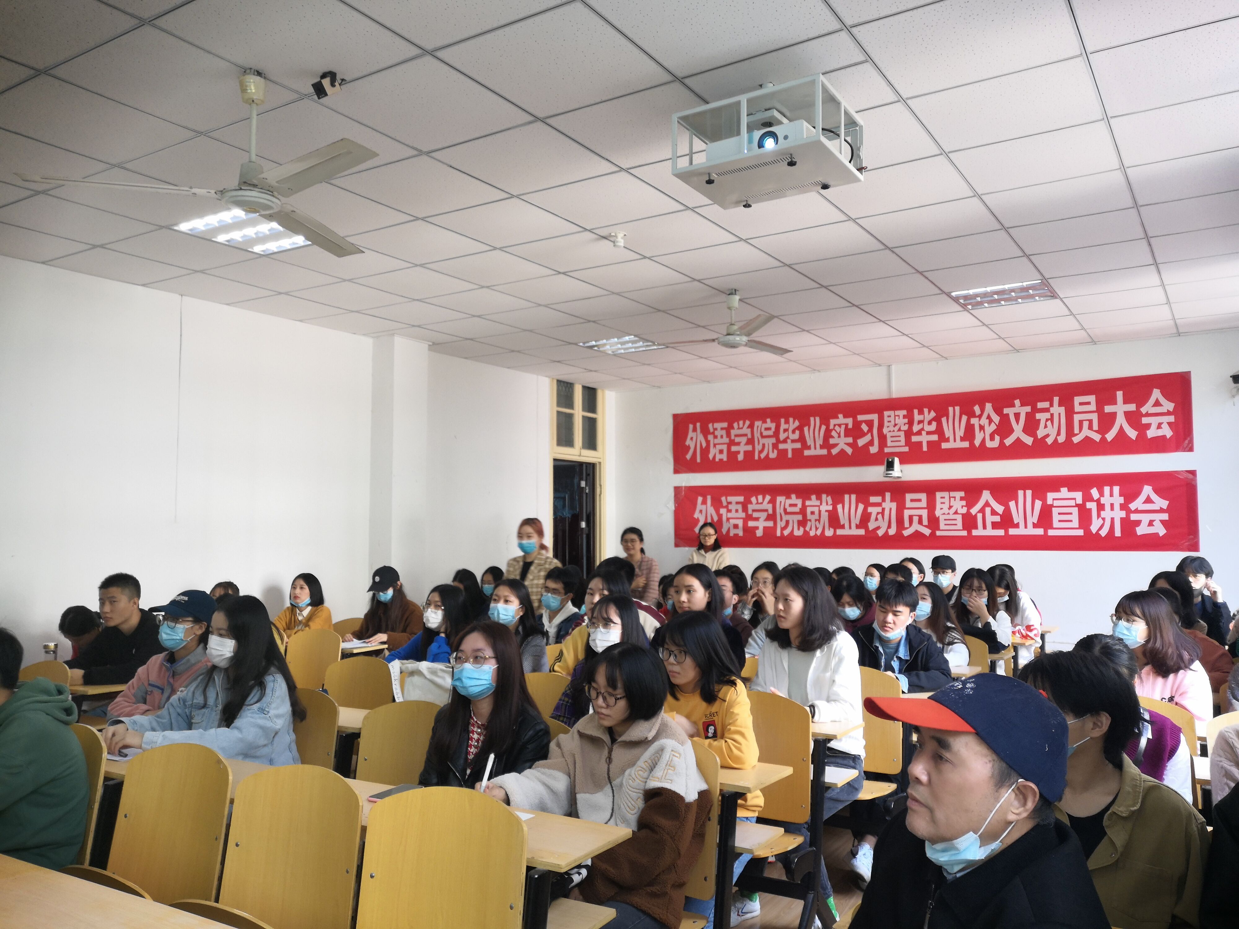 (通讯员 陈平香)10月21日下午1:00外语学院在1308教室顺利举行了2021届2021届毕业实习暨毕业论文动员大会。参加本次大会的有外语学院党总支书记陈世清教授、外语学院教学副院长温偲睿副教授、英语专业教研室主任陈平香副教授,毕业班班主任代表龙韵泽老师以及17级70多名毕业生。大会由温副院长主持。 首先,温副院长就毕业论文和毕业实习的工作做了总体部署,强调了毕业论文和毕业实习的重要性,希望毕业生们能够站好最后一岗,高质量完成毕业论文和毕业实习工作。 接着,陈世清书记对毕业生提出了两点要求:一是希望毕业生们能够用好专业知识,认真完成毕业论文,争取更多优秀毕业论文;二是希望在疫情防控常态化背景下,毕业生们能够找到心仪的工作,也能够做好个人防护,确保个人人身安全。 最后,陈平香主任对毕业论文和毕业实习的具体要求进行了讲解。告诉同学们毕业论文完成的各个时间节点以及具体的格式要求。对于毕业实习,她重点强调了毕业实习的安全问题以及毕业实习报告的撰写要求。 ![]() ![]() ![]() ![]() |