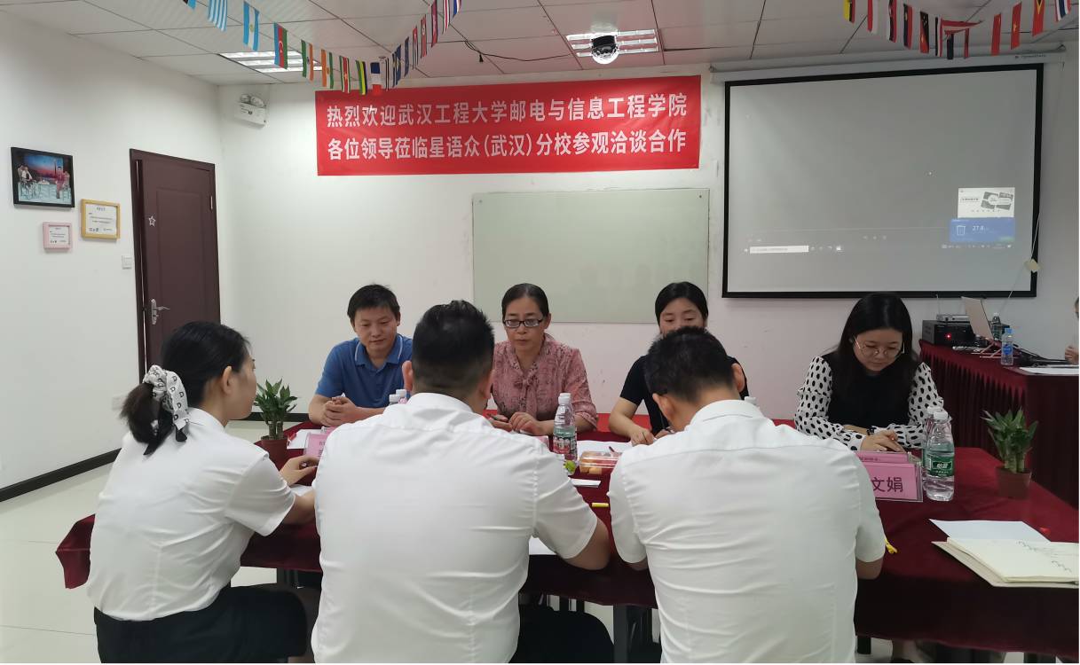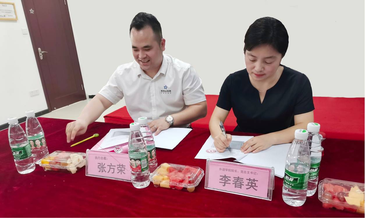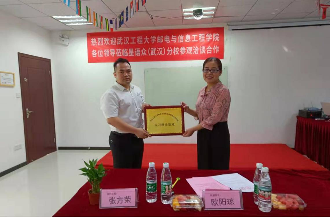 (通讯员 温偲睿)2021年9月19日,学院副院长欧阳琼、教务部部长王仕仙,外语学院院长李春英、副院长温偲睿一行前往星语众教育举行实习实训基地签约挂牌仪式。星语众教育执行总裁张方荣、人事经理钟广明,武汉分校校长吴文娟、教学部经理裴阳君出席本次仪式。