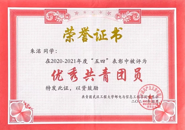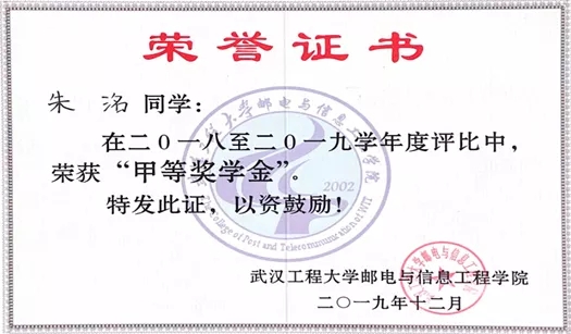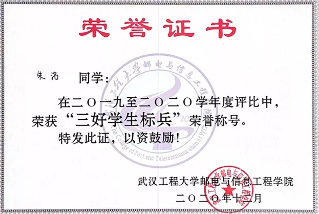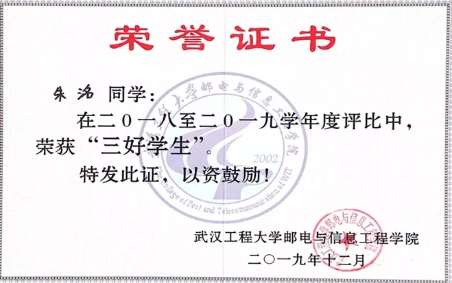 专业学习成绩优异,多次荣获学院甲等奖学金、“三好学生”、“三好学生标兵”等荣誉。