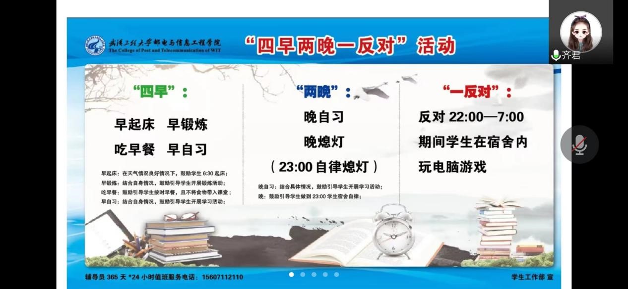 首先,齐君副书记强调外语学院历来重视学风建设,开学后将启动新生“421”工作和外院“晨读打卡”特色活动,为大家营造积极向上、奋发有为的校园学习氛围,希望同学们能够珍惜时光,刻苦求知。 ![]()