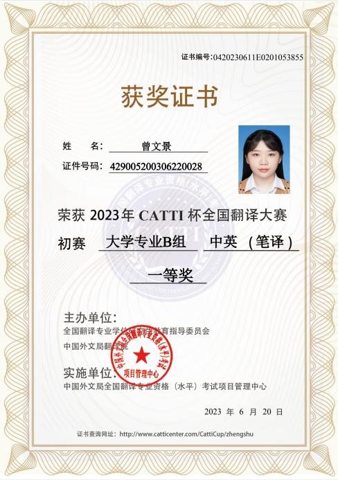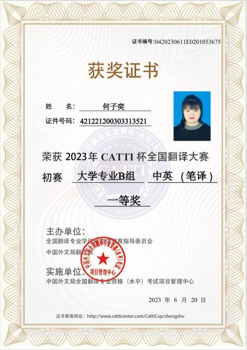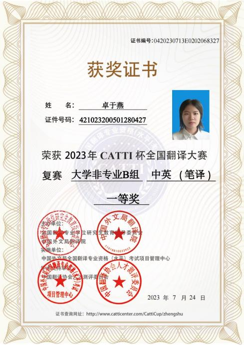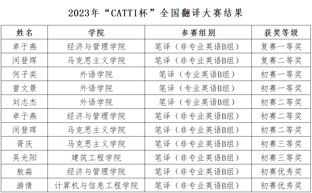 我院学子在2023年“CATTI杯”全国翻译大赛中喜获佳绩