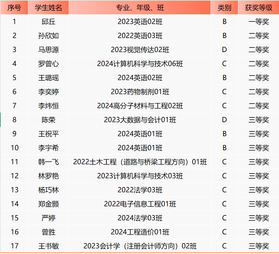 获奖名单