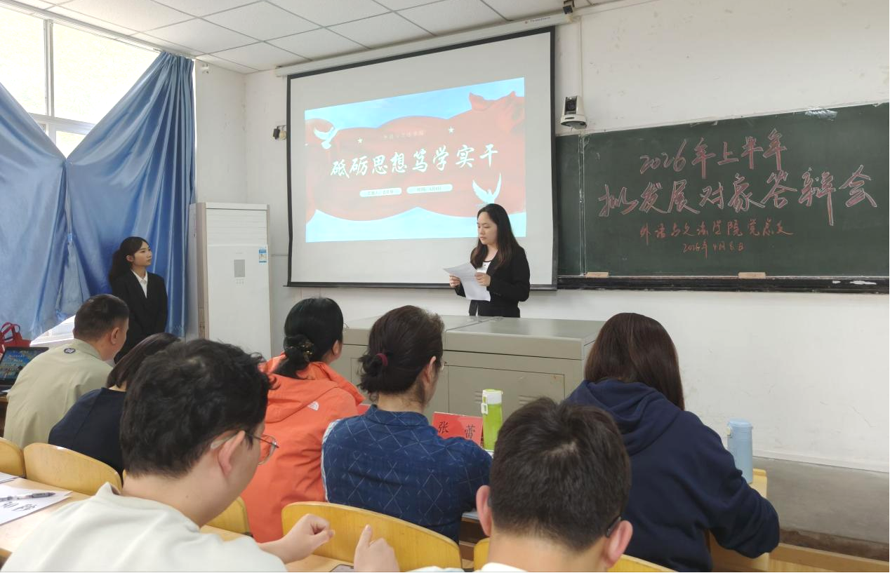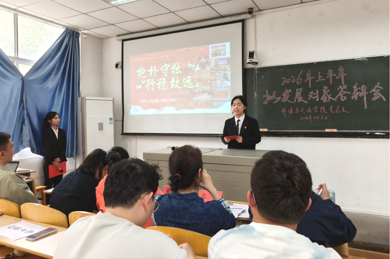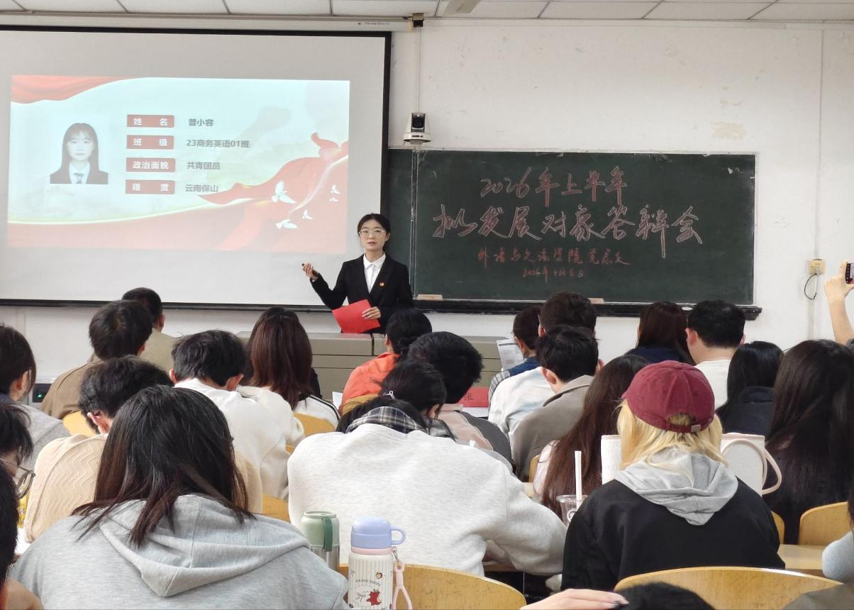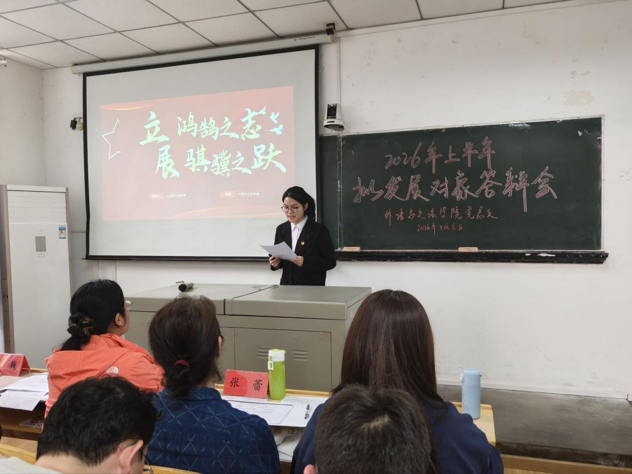 各党支部经过综合考察,确定了13名入党积极分子参与本次答辩。同学们围绕思想政治、学业成绩、工作实践及未来展望等方面依次进行全面细致的自我展示,深入阐述了自身向党组织积极靠拢的入党初心、思想成长历程与实际行动表现。展示结束后,评委老师们聚焦入党动机、先锋带动、个人实践等内容提问,各位拟发展对象结合自身实际从容作答,充分展现了外文学子奋勇争先、锐意进取、昂扬向上的青春风采。